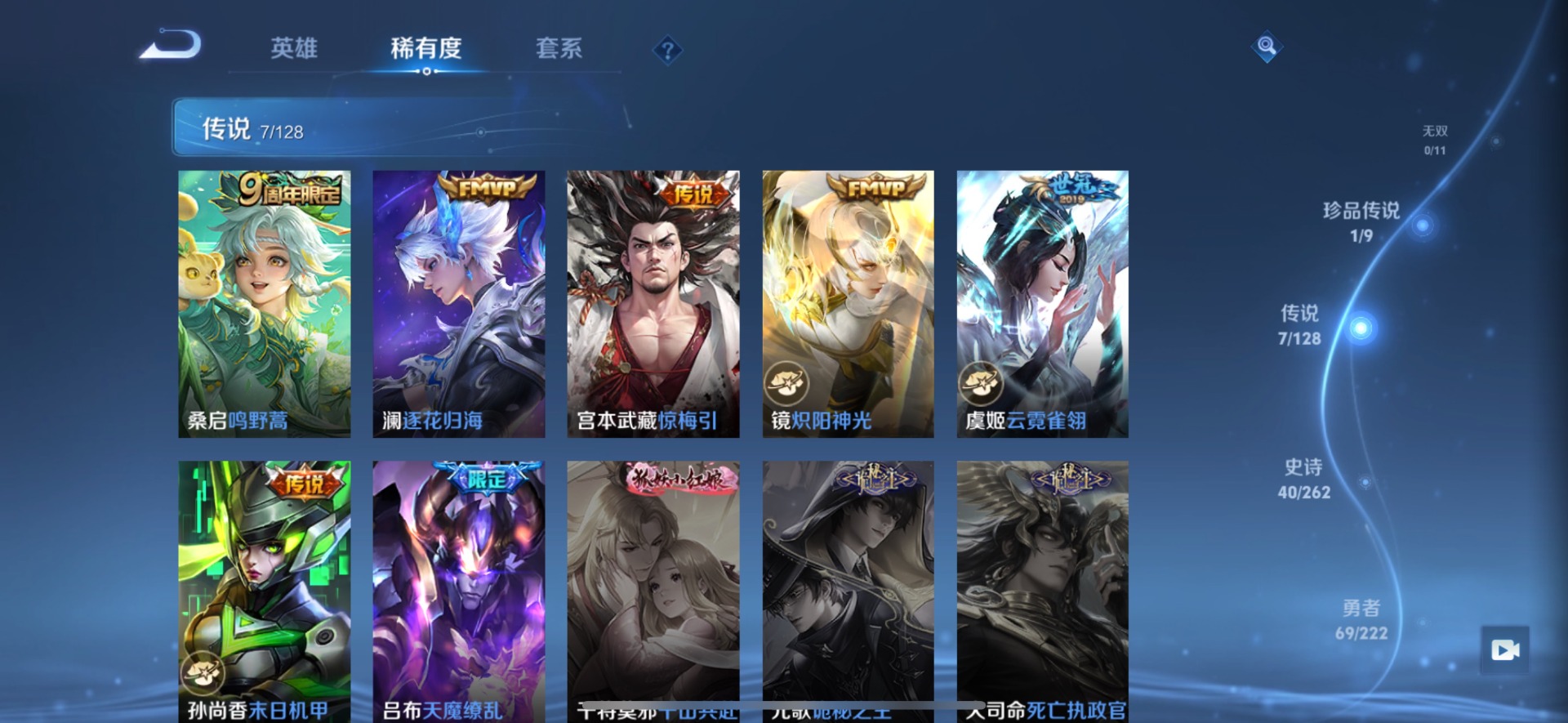 - [13009483]安卓Q-V6-尊贵铂金I段位-126英雄-232皮肤-0典藏-0珍品无双-0无双-0珍品传说-7传说-59史诗 【英雄全皮】:鬼谷子全皮 【荣耀典藏】:武则天英雄 【传说皮肤】:桑启鸣野蒿,貂蝉曦玄引,曜云鹰飞将,百里玄策白虎志,貂蝉仲夏夜之梦,孙尚香末日机甲,孙悟空地狱火 【限定皮肤】:白起狰,大乔绒语心约,姜子牙天穹之誓,狄仁杰阴阳师,虞姬凯尔特女王,赵云皇家上将,妲己时之奇旅,嬴政白昼王子,鲁班七号狮舞东方,钟无艳王者之锤,钟无艳超时空战士,芈月重明,吕布猎兽之王,周瑜赤莲之焰,夏侯惇朔风刀,甄姬游园惊梦,甄姬落雪兰心,曹操烛龙,典韦穷奇,狄仁杰魔术师,狄仁杰万华元夜,项羽海滩派对,老夫子醍醐杖,程咬金演武夺筹,王昭君凤凰于飞,兰陵王驯魔猎人,花木兰青春决赛季,牛魔御旌,后羿如梦令,李元芳银河之约,李元芳云中旅人,钟馗神迹守卫,钟馗驱傩正仪,蔡文姬繁星吟游,太乙真人饕餮,鬼谷子原初探秘者,鬼谷子五谷丰年,百里玄策白虎志,弈星混沌棋,沈梦溪星空之诺,沈梦溪大漠名商,明世隐疑决卦,裴擒虎天狼狩猎者,裴擒虎李小龙,裴擒虎擒涛扼浪,狂铁御狮,米莱狄御霄,盾山御銮,上官婉儿梁祝,鲁班大师探海日志,桑启海盐诗旅,阿古朵江河有灵,张良古海寻踪,鬼谷子天穹祈灯,姬小满妄想食味,安琪拉乘龙聚宝船,貂蝉曦玄引,刘邦剑破天穹,周瑜熔金海岸 【年限皮肤】:百里玄策白虎志,王昭君凤凰于飞,安琪拉乘龙聚宝船 【赛季限定】:白起狰,芈月重明,夏侯惇朔风刀,曹操烛龙,典韦穷奇,狄仁杰万华元夜,老夫子醍醐杖,程咬金演武夺筹,张良古海寻踪,牛魔御旌,李元芳云中旅人,虞姬凯尔特女王,钟馗驱傩正仪,太乙真人饕餮,鬼谷子原初探秘者,弈星混沌棋,沈梦溪大漠名商,明世隐疑决卦,裴擒虎擒涛扼浪,狂铁御狮,米莱狄御霄,盾山御銮,鲁班大师探海日志,桑启海盐诗旅,鬼谷子天穹祈灯,刘邦剑破天穹,姜子牙天穹之誓 【战令限定】:嬴政白昼王子,鲁班七号狮舞东方,钟无艳超时空战士,吕布猎兽之王,周瑜赤莲之焰,甄姬落雪兰心,兰陵王驯魔猎人,李元芳银河之约,钟馗神迹守卫,沈梦溪星空之诺 【史诗皮肤】:露娜紫霞仙子,钟无艳王者之锤,赵云皇家上将,赵云未来纪元,貂蝉圣诞恋歌,甄姬冰雪圆舞曲,狄仁杰魔术师,廉颇地狱岩魂,宫本武藏鬼剑武藏,孙尚香水果甜心,嬴政摇滚巨星,妲己魅力维加斯,墨子金属风暴,吕布圣诞狂欢,刘禅绅士熊喵,曹操幽