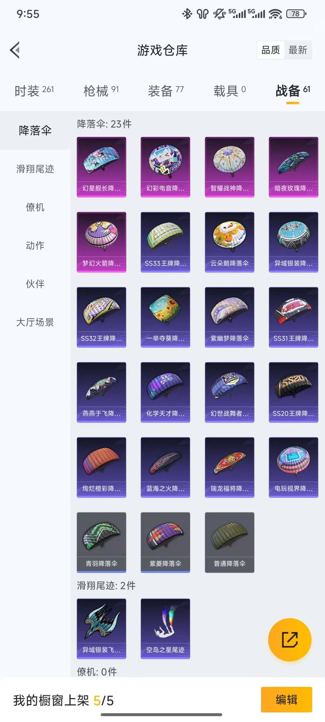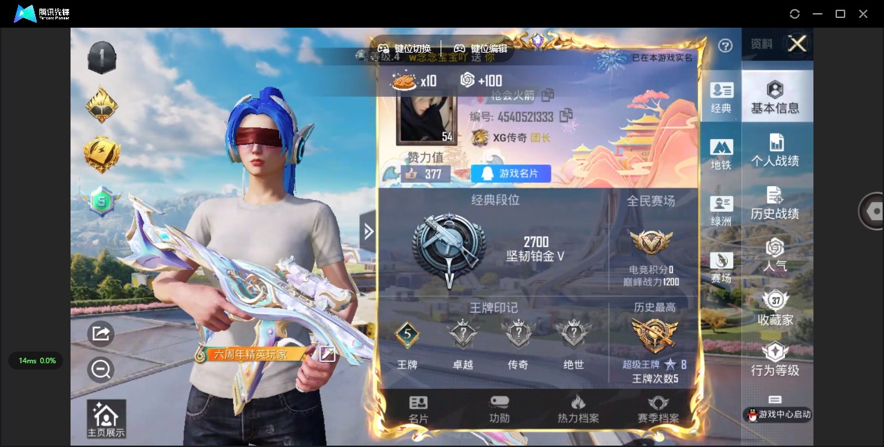 [12201909]3粉装 4特效枪 5印记 可二次 可修改实名 身法装备:暗影哥特(红眼罩) 优质装备:梦幻火箭(新101)(新火箭少女101粉色套装),缤纷油彩(猪妹猪脸妹),M416-女娲灵识,AUG-暖羊咩咩,AMR-智耀战神,Kar98K-巳巳如意 热门装扮:傲傲奶龙 六级特效枪:六级AMR-智耀战神 五级特效枪:五级Kar98K-巳巳如意,五级AUG-暖羊咩咩 三级特效枪:三级M416-女娲灵识 紫色装扮:SS31特训套装,SS23特训,云朵鹅,彩虹兔,雪绒豹,SS33特训套装,顶瓜瓜,SS22特训,千禧之恋,完美偶像,帅气教官,幻世战舞者,冰川特警,SS21特训,瑞龙福将,团圆交子,SS17特训,捷德奥特曼,艾克斯奥特曼,赛罗奥特曼,SS20特训,SS18特训,SS19特训,风暴特警,骑行爱好者,魅力单车,龙的传人,青年教官,都市漫游者,长空猛禽,霓虹街区,蓝海鲸歌,探宝勇士,沙漠毒蛇,绮丽涂鸦,缤纷果语,耀眼新星,虎虎生威吉莉,竞技达人朋克,福星高照,空岛之星,空投萌叽,鱼渊荷华,玉兔迎春,燕燕于飞,巳巳如意,竞技名士,绒宝小鹅,异域银装,暗影哥特(红眼罩),红熊茄茄,果汁能量,SS26特训,大橘大利,白糯汤圆,青玉碎影,紫幽梦,Z.I.B特工,SS32特训服(SS32特训套装),蓝冰羽,光之冒险,粉恋花,恋语绒绒 优质战备:幻星舰长降落伞,幻彩电音降落伞,智耀战神降落伞,梦幻火箭降落伞,暗夜玫瑰降落伞