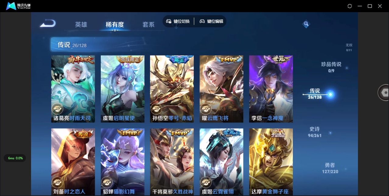 - [11415528]V6 4传说 123英雄 148皮肤 可修改实名 女号 优质装备:仲夏夜之梦(大飞蛾) 珍宝阁皮:蔷薇恋人,女武神 限定皮:鸣野蒿,神威(电光马子),高山流水,五谷丰年,梁祝,李小龙,如梦令-嫦娥,寅虎·瑞焰(虎皮蛋子),时之祈愿-瑶(瑶传限) 史诗皮:化蝶舞,百相守梦-黄忠,遇见神鹿,紫霞仙子,电玩小子(小书包),百解令(蒙犽),晚萤,猫狗日记-大乔,乱世虎臣,女仆咖啡,摇滚巨星,水果甜心,心灵骇客,时之奇旅-安琪拉,功夫厨神,德古拉伯爵,暗隐猎兽者,幽灵船长,鬼剑武藏,心灵战警,舞动绿茵,纤云弄巧,繁星吟游(呼啦呼啦),拒霜思,缤纷独角兽,乘风破浪,逐浪之夏,水晶猎龙者,金属风暴,圣诞狂欢,圣诞恋歌,鹰眼统帅,暗夜贵公子,无心