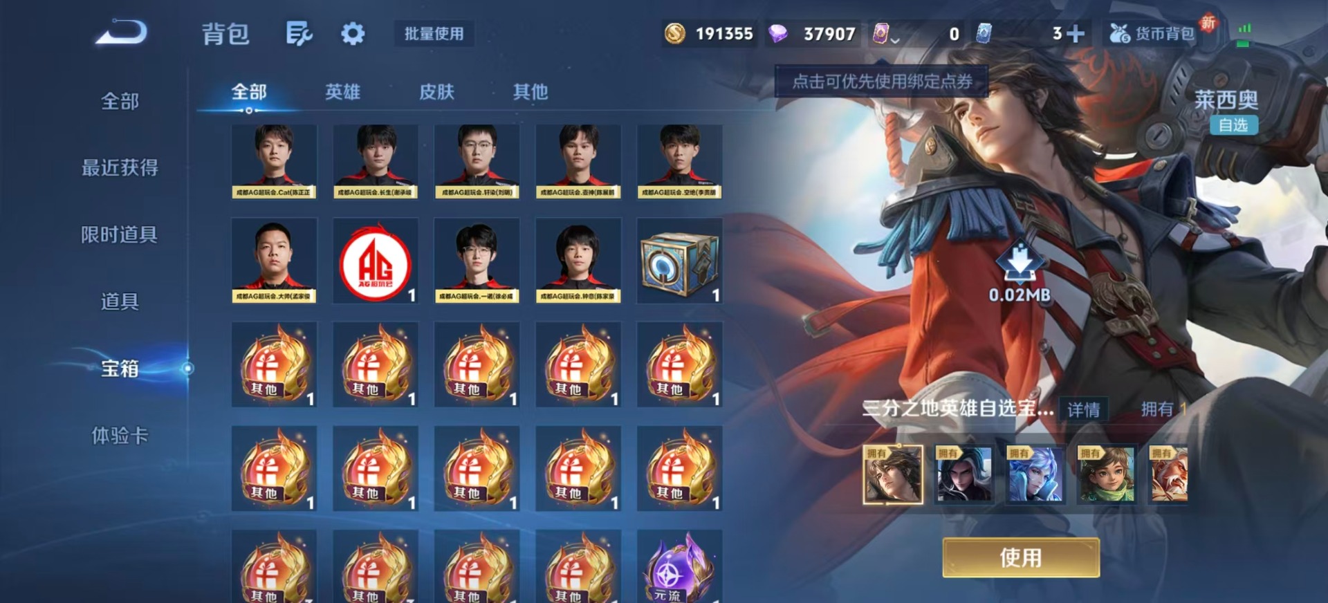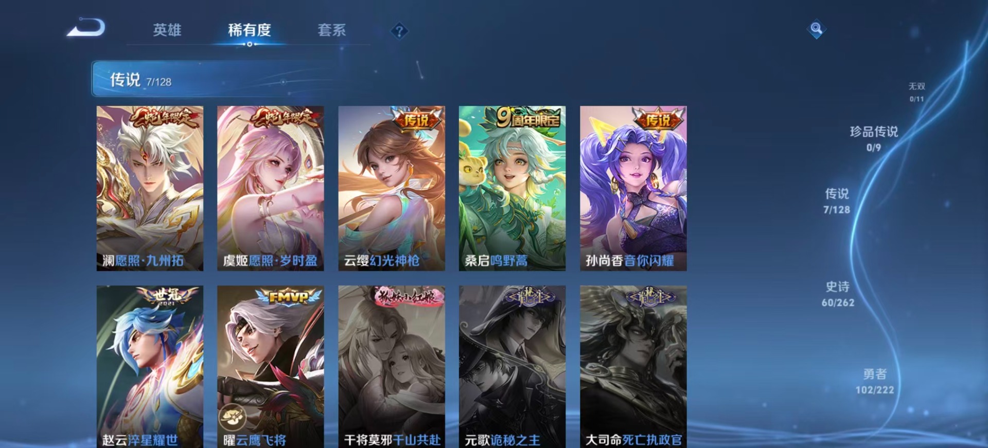 - [12030685]V7 6传说 104英雄 141皮肤 可修改实名 优质装备:云霓雀翎,淬星耀世,超时空战士-狄仁杰,涂山容容 传说皮:幻光神枪 珍宝阁皮:蔷薇恋人 限定皮:愿照·九州拓(澜年限),傲雪梅枪,白鹤梁神女,高山流水,武圣,天狼溯光者,李小龙,逐梦之影,如梦令-后羿,孙行者,猪悟能,青春决赛季,乒乒小将,匿光追影者,女儿国国王 史诗皮:器灵·浮梦炉,化蝶舞,白龙吟,黄金分割率,特工魅影,冰冠公主,偶像歌手,末日机甲-吕布,猫狗日记-孙策,猫狗日记-大乔,节奏热浪,女仆咖啡,摇滚巨星,水果甜心,心灵骇客,功夫厨神,德古拉伯爵,暗隐猎兽者,乐园奇幻夜,天秀·启明,拒霜思,缤纷独角兽,乘风破浪,逐浪之夏,水晶猎龙者,曙光守护者,金属风暴,鹰眼统帅,魅力维加斯,未来纪元-赵云