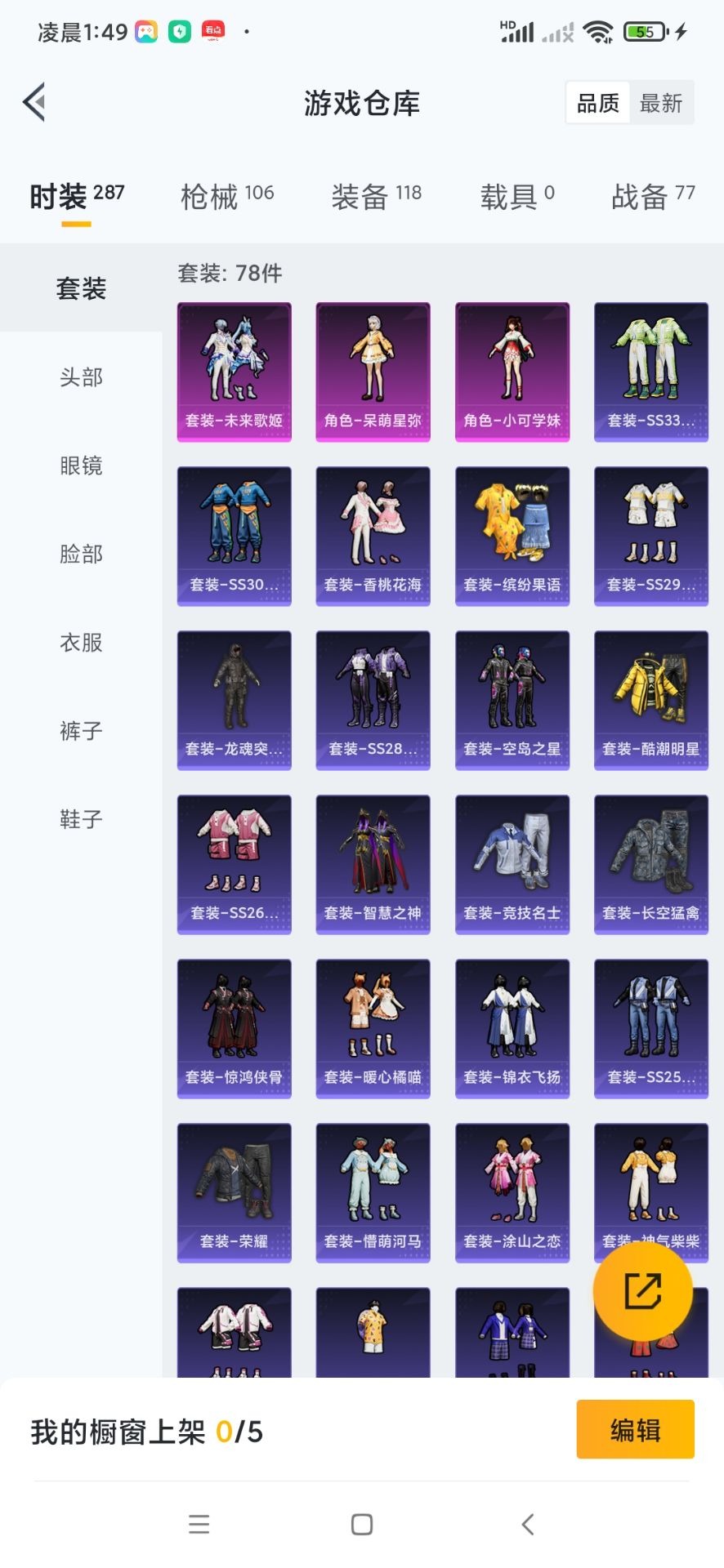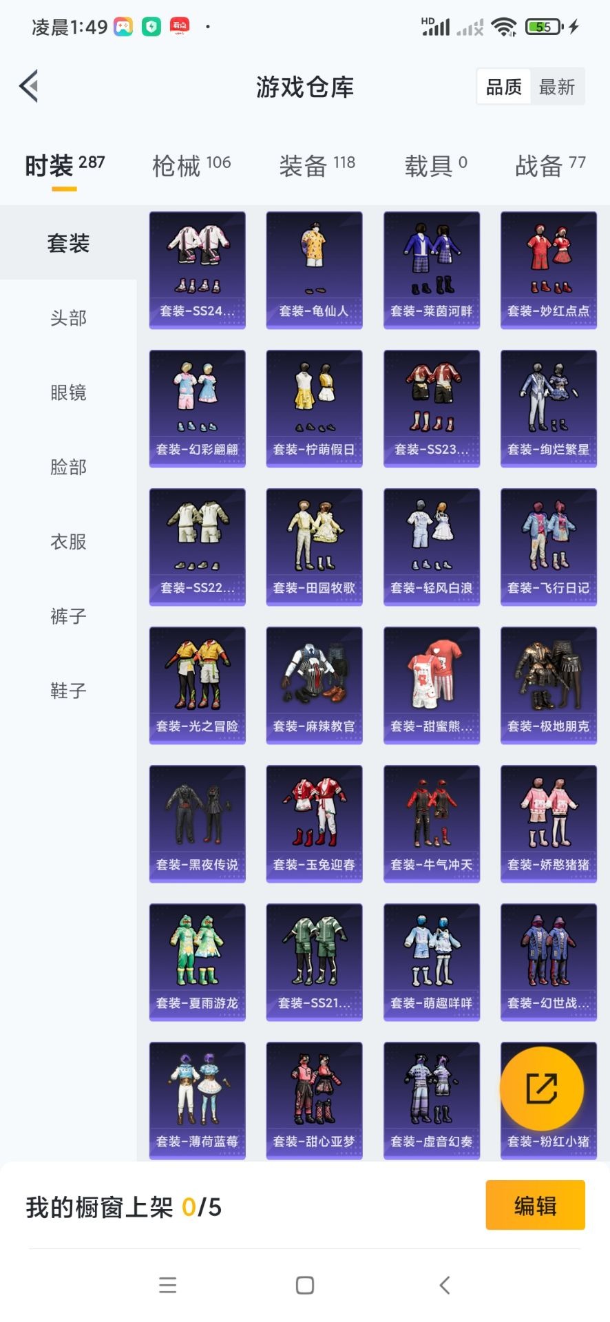 - [11527363]8粉装 3特效枪 1载具 18印记 可二次 可修改实名 身法装备:2号机款机体服(红螳螂) 优质装备:2号机款机体服(红螳螂),特斯拉Roadster(水滴蓝),M24星之信仰,炙焰红王,冰霜白皇,童趣迷兔,七级M24-星之信仰,千金淑猫,幻彩电音,Kar98K-巳巳如意 时装数:801 枪械数:262 战备数:1 热门装扮:恐龙拽拽,金丰海韵,软萌银虎,奇迹天团,呆萌铁蟹 五级特效枪:五级Kar98K-巳巳如意,五级DP-28-豹影疾电 紫色装扮:田园牧歌,轻风白浪,SS22特训,莱茵河畔,SS23特训,幻彩翩翩,妙红点点,香榭午后,娇憨猪猪,酸甜橘柚,萌趣咩咩,SS21特训,SS31特训套装,SS5特训,人气偶像,冰川特警,冷焰舞者,北国孤狼,旭日情侣,SS30特训套装,云朵鹅,雪绒豹,SS33特训套装,青涩时光,顶瓜瓜,SS20特训,青春冒险家,潮流游乐家,SS15特训,双棍侠客,时空追击者,暴风机械师,SS16特训,快乐星愿,银白舞王,SS13特训,骁骑迪迦,治愈之星,迅捷之星,科技之星,SS14特训,萌趣颜团子,特种颜团子,猎梦纪元,飞驰魅影,音速流光,极速竞梦,SS19特训,醇脆可可,吉莉礼服,甜心亚梦,虚音幻奏,明日香款战斗服,真嗣款战斗服,瑞龙福将,团圆交子,醒狮腾龙,SS17特训,冰川谧蓝,异彩先驱,SS18特训,都市魅力,酒红色名流,金鼠迎春,长空猛禽,雪山精英,霓虹极客,霓虹街区,青年教官,荣耀,蓝彩潮人,蓝色守护者,蓝色运动,虎虎生威吉莉,街头潮人,跃动心情,风行保卫者,飞行日记,龙腾端午,骑行爱好者,魅力单车,鹤鸣,麻辣教官,黄色伏地魔,黄色名流,黄色运动,黎明保卫者,黑色伏地魔,龙的传人,龟仙人,冰河战士,龙魂突击队,香桃花海,极速红龙,橘黑制服,沙漠雄狮,海岛探路者,涂山之恋,深蓝色名流,滨海假日,幻影武者,坚韧舞者,夏日音浪,完美偶像,帅气教官,幻世战舞者,战地督导,探宝勇士,湖蓝色名流,滨海厨神,绮丽涂鸦,生化防暴队,疯狂小兔子,白色伏地魔,破晓战魂,破蛋小黄鸡,神秘领域,甜蜜告白,福星高照,空岛之星,空投萌叽,竞技勇士朋克,竞技达人朋克,红色运动,甜蜜熊情侣,牛气冲天,灰色格斗者,灼焰舞者,炫蓝之夏,牛气满满,猛禽,猎鹰,镭射皇者,雏菊兔兔,萝兰蝴蝶,SS29特训,星途旅人,白光莹,纯真浪花,热情海星,曼妙人鱼,SS28特训