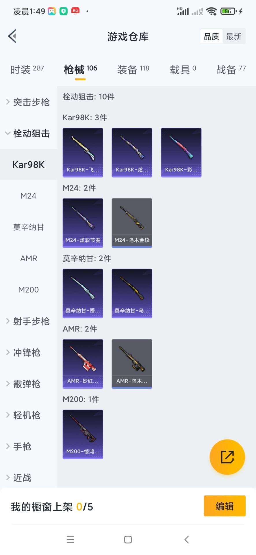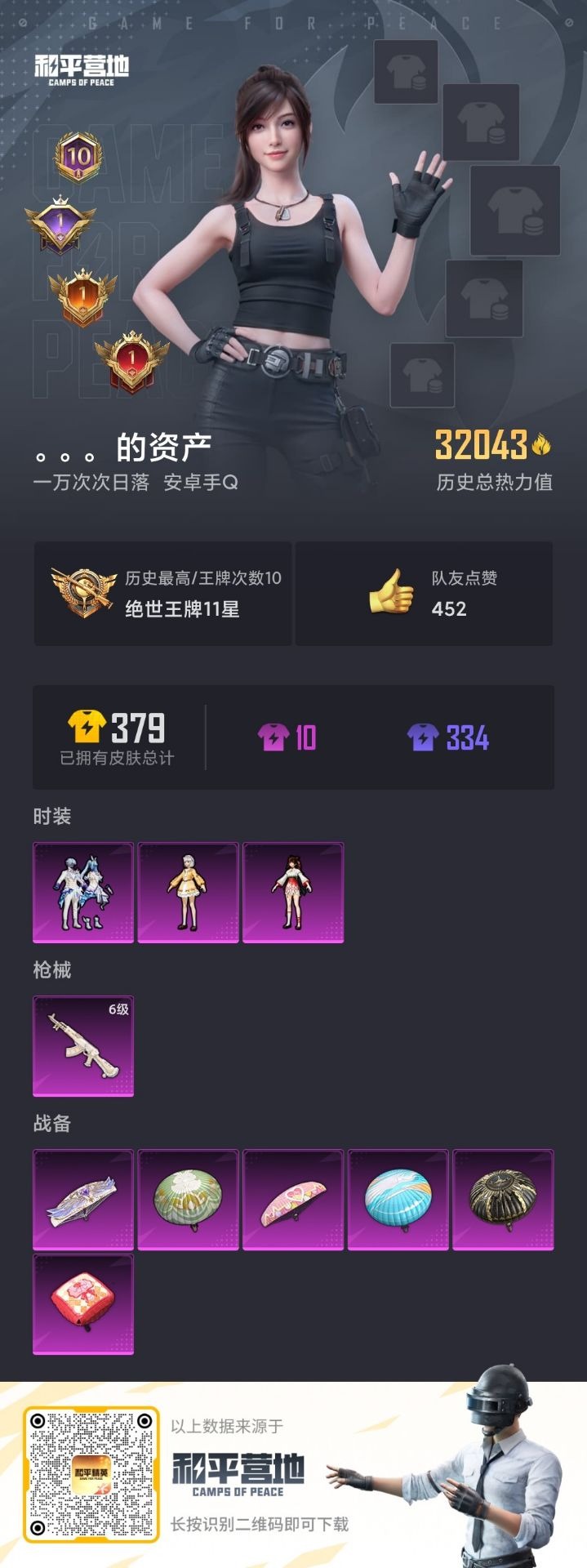 - [11879495]总资产:107.3 1干员外观 3传说枪械 可二次 可修改实名 烽火地带段位:无段位 全面战场段位:无段位 哈夫币:7.301 传说武器皮肤:AK-12突击步枪-夜鹰,复合弓-黑-天际线,725双管霰弹枪-送葬人-无题密令 史诗武器皮肤:SR-25射手步枪-尖端治疗,MP5冲锋枪-深海恐惧,SR-3M紧凑突击步枪-荒野求生,勇士冲锋枪-深海恐惧,AKM突击步枪-林中猎手,.357左轮-幸运时刻,SVD狙击步枪-暗夜猎手,M16A4突击步枪-竞赛选手,M1014霰弹枪-林中猎手,SV-98狙击步枪-林中猎手,PTR-32突击步枪-英雄,PSG-1射手步枪-无垢,M250通用机枪-囚徒,SV-98狙击步枪-囚徒,S12K霰弹枪-曙光,M14射手步枪-黑鹰坠落 干员外观:露娜-黑·天际线