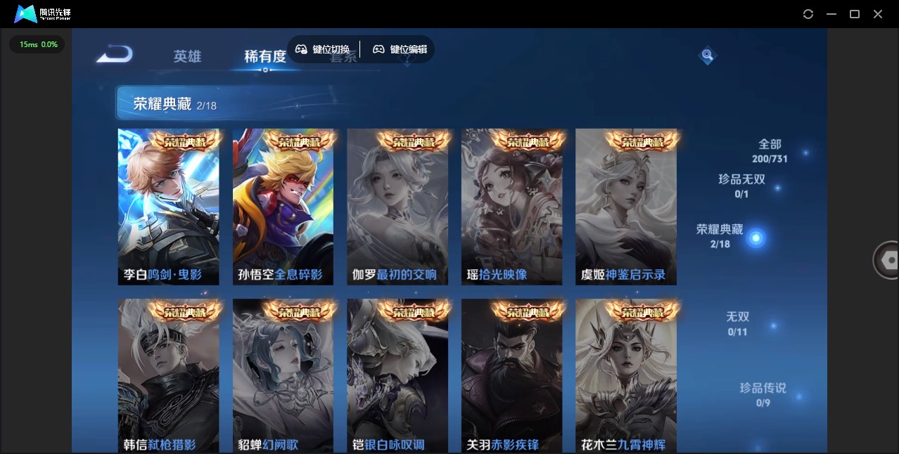 - [11658314]V7 1典藏 6传说 123英雄 222皮肤 可修改实名 荣耀水晶:鸣剑·曳影 传说皮:地狱火,仲夏夜之梦(大飞蛾),一念神魔 珍宝阁皮:优雅恋人,蔷薇恋人 限定皮:至尊宝,白虎志(电光耗子),凤求凰(白切鸡),武陵仙君(小桃花),遇见飞天,五谷丰年,梁祝,天狼狩猎者,李小龙,朱雀志(守约年限),霸王别姬-项羽,默契交锋-花木兰,猪悟能,一生所爱,大圣娶亲,引擎之心,青春决赛季 史诗皮:紫霞仙子,电玩小子(小书包),白龙吟,黄金分割率,特工魅影,千年之狐,江河有灵,冰冠公主,晚萤,龙骑士(小龙虾),末日机甲-吕布,猫狗日记-孙策,乱世虎臣,女仆咖啡,水果甜心,绅士熊喵,天才门将,星夜王子,心灵骇客,功夫厨神,德古拉伯爵,暗隐猎兽者,幽灵船长,鬼剑武藏,心灵战警,舞动绿茵,地狱岩魂,纤云弄巧,繁星吟游(呼啦呼啦),缤纷独角兽,乘风破浪,逐浪之夏,水晶猎龙者,金属风暴,圣诞狂欢,圣诞恋歌,鹰眼统帅,魅力维加斯,未来纪元-赵云
