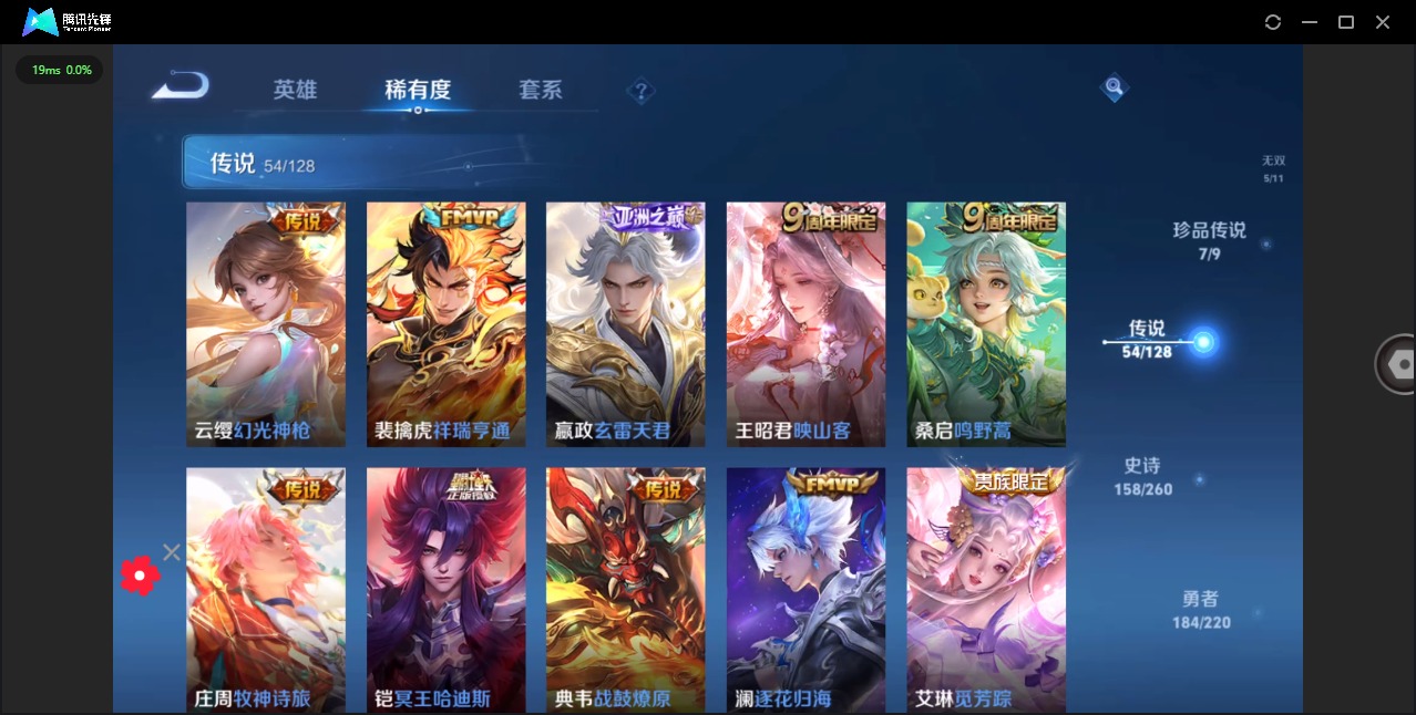 - [11630187]V7 4传说 115英雄 100皮肤 可修改实名 优质装备:云鹰飞将(小将军),一念神魔,涂山容容 珍宝阁皮:女武神 限定皮:鸣野蒿,太华(伽罗年限),神威(电光马子),飞衡(韩信年限),高山流水,岱宗(典韦年限),李小龙,朱雀志(守约年限),猪悟能,大圣娶亲 史诗皮:千年之狐,暗夜猫娘,龙骑士(小龙虾),修罗,水果甜心,德古拉伯爵,幽灵船长,鬼剑武藏,舞动绿茵,乘风破浪,逐浪之夏,水晶猎龙者,圣诞恋歌,鹰眼统帅,魅力维加斯