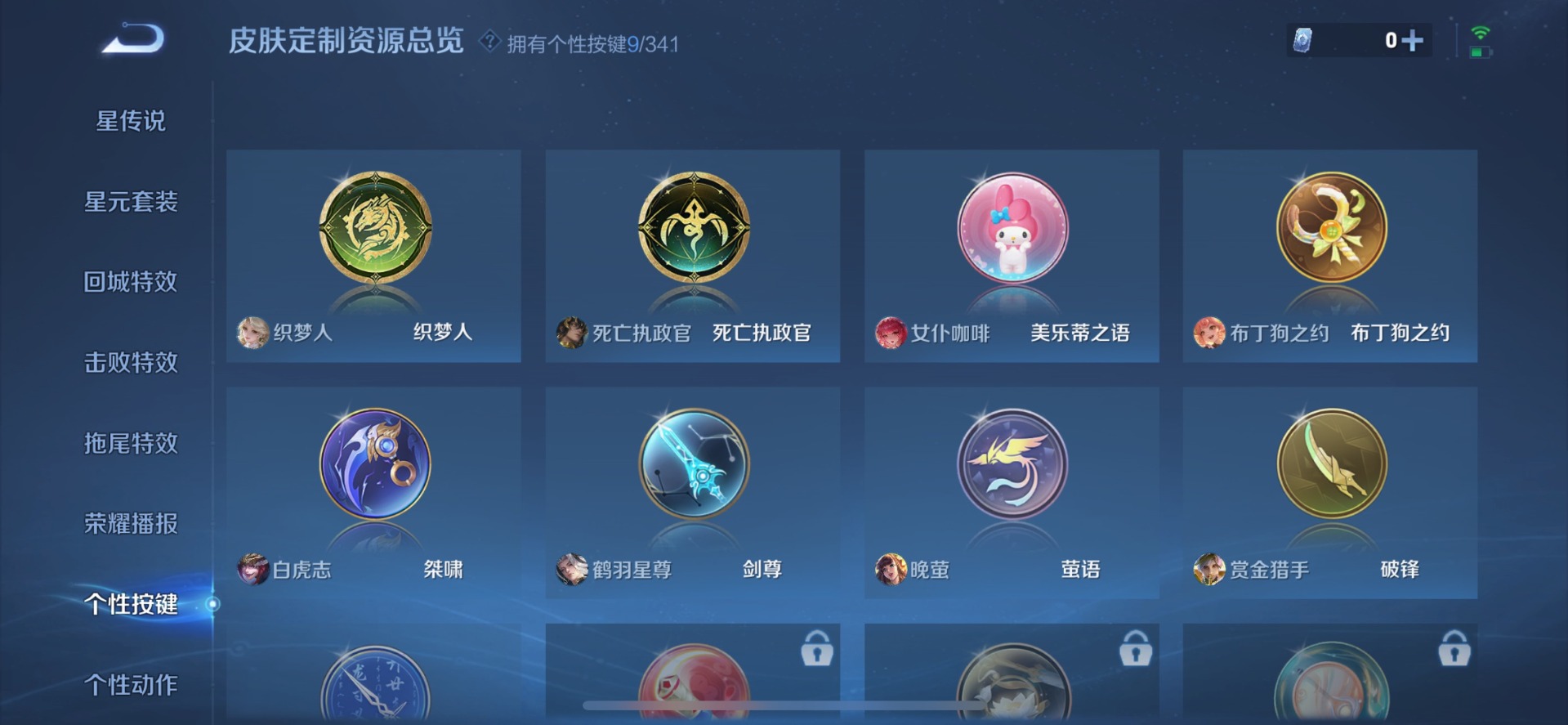铠青龙志,伽罗天狼溯光者,后羿如梦令,镜匿光追影者,公孙离祈雪灵祝,公孙离玉兔公主,公孙离蜜橘之夏,裴擒虎李小龙,上官婉儿梁祝,花木兰默契交锋,桑启鸣野蒿,孙悟空孙行者,百里玄策白虎志,马超神威,韩信傲雪梅枪,韩信逐梦之影,百里守约朱雀志,蔡文姬奇迹圣诞