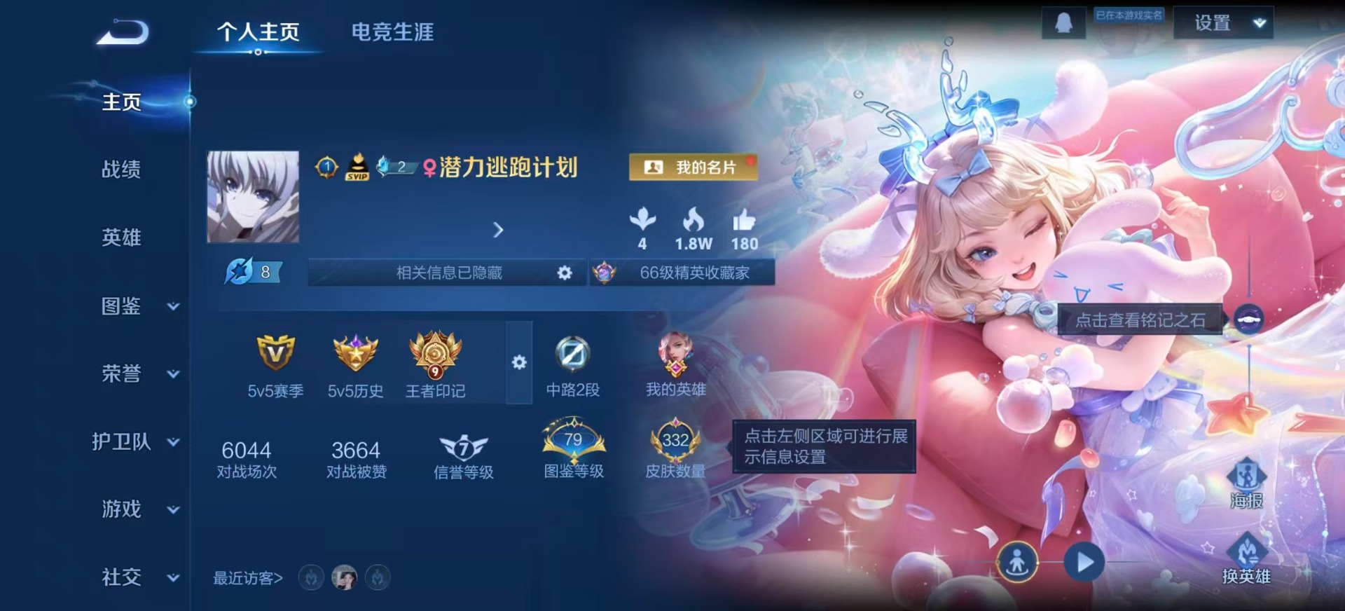 - PX_2096855-贵族等级: V4 英雄数: 51 皮肤数: 18 限定皮: 五谷丰年