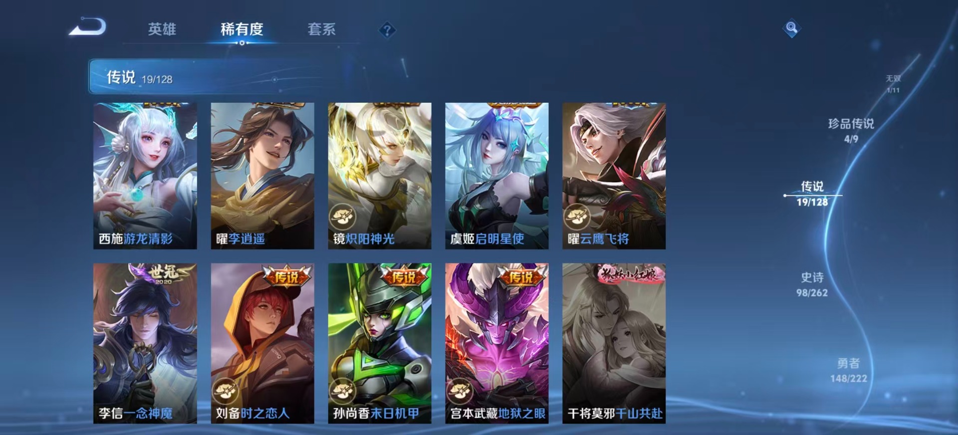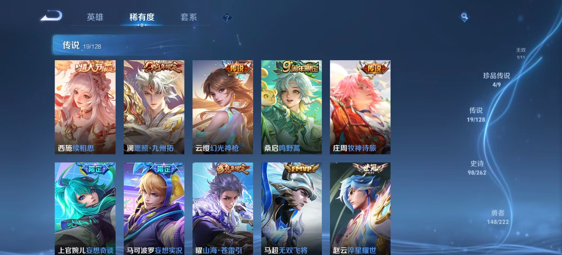 刘备时之恋人,赵云淬星耀世,李信一念神魔,庄周牧神诗旅,镜炽阳神光,西施游龙清影,西施续相思,曜云鹰飞将,曜李逍遥,马超无双飞将,云缨幻光神枪