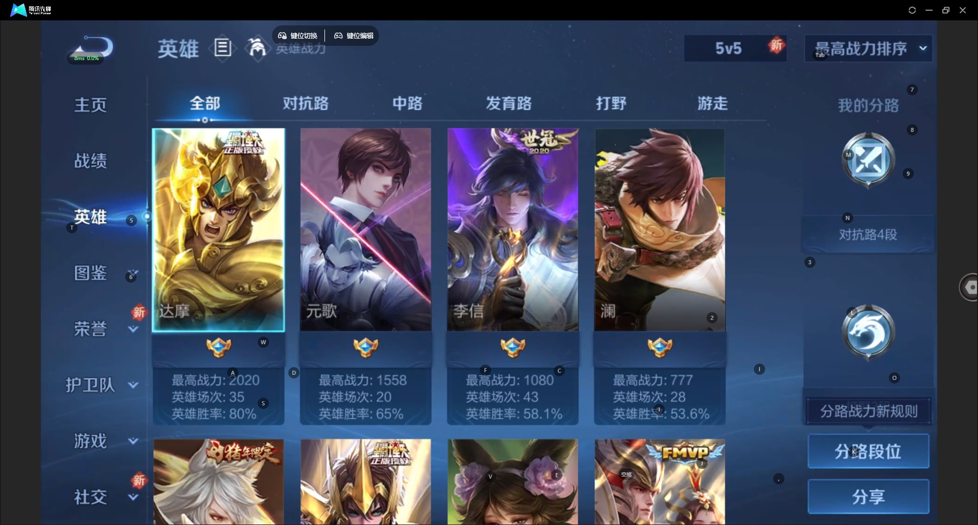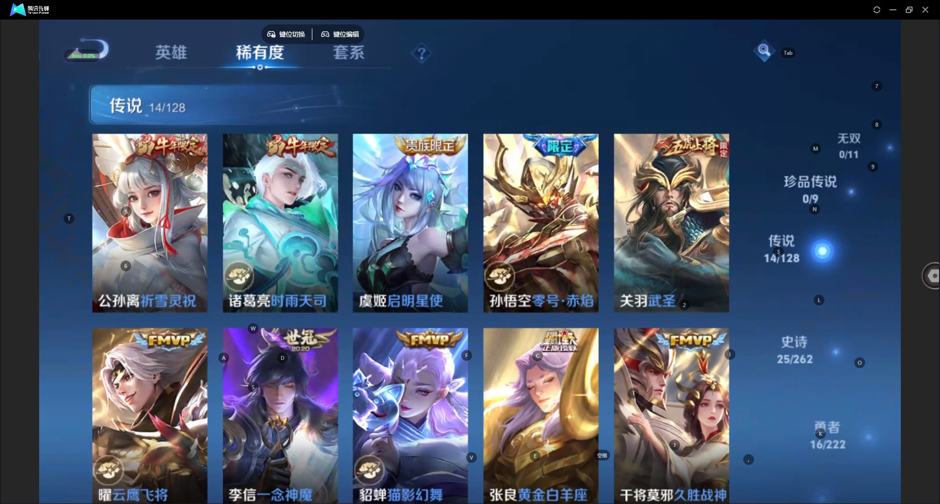 - [11473028]V8 20传说 111英雄 242皮肤 可修改实名 优质装备:云鹰飞将(小将军),炽阳神光,地狱之眼,时之恋人-刘备(电焊工),淬星耀世,超时空战士-狄仁杰,浮生妄,鹤羽星尊,澜逐花归海 传说皮:典韦战鼓燎原,云诺千山,祥瑞亨通,幻光神枪 珍宝阁皮:妄想食味 限定皮:愿照·九州拓(澜年限),愿照·岁时盈(虞姬年限),愿照·山河定(司空震年限),逐霄战戟,鸣野蒿,至尊宝,傲雪梅枪,白晶晶,神威(电光马子),飞衡(韩信年限),齐天大圣,怒海麟威,岱宗(典韦年限),李小龙,默契交锋-花木兰,百木心枪,山海·玄木吟(马可年限) 史诗皮:器灵·浮梦炉,绮世丹青,瑰影绮梦,化蝶舞,龙之律动,雪豹·霜爪,石田雨龙,茶境仙,破空之剑,琥珀纪元伽罗,蔬乡物语(鲁班七号),超元猎域,百相守梦-百里守约,星界特工,百相守梦-黄忠,织梦人,紫霞仙子,电玩小子(小书包),黄金分割率,特工魅影,千年之狐,永昼,江河有灵,匿光侦查者,魅语,百解令(蒙犽),高渐离燃音魔法,冰冠公主,偶像歌手,暗夜猫娘,猫狗日记-孙策,乱世虎臣,节奏热浪,修罗,女仆咖啡,摇滚巨星,水果甜心,绅士熊喵,星夜王子,德古拉伯爵,暗隐猎兽者,幽灵船长,鬼剑武藏,暗渊魔法,心灵战警,天秀·启明,地狱岩魂,纤云弄巧,逐浪之夏,月团寄思,水晶猎龙者,曙光守护者,金属风暴,圣诞狂欢,鹰眼统帅,魅力维加斯,赏金猎手,天秀·音浪,无心,未来纪元-赵云