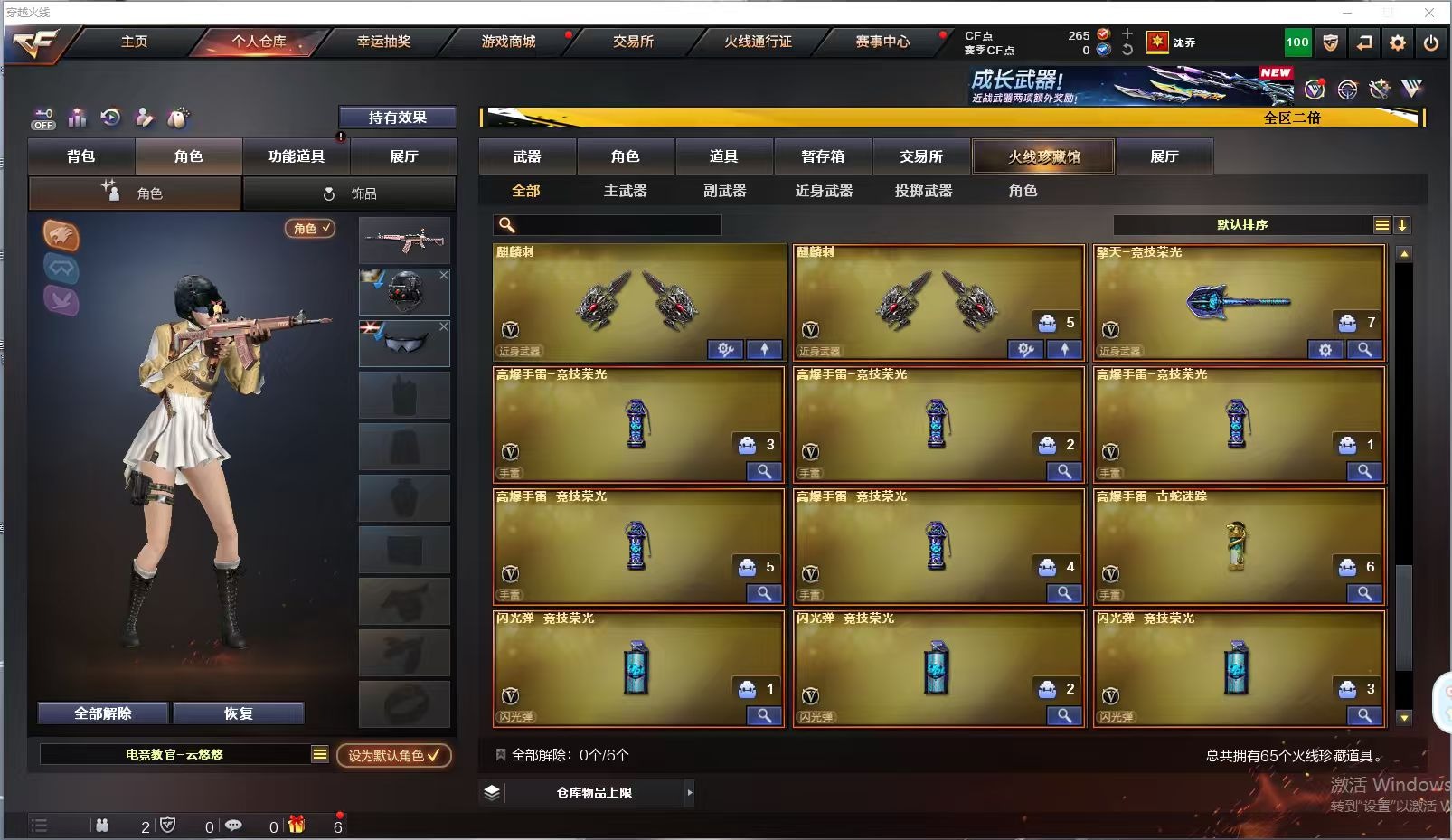 - [10197291]实名: 可修改 时装数: 563 载具数: 7 枪械数: 210 战备数: 136 热门装扮: 奇异狩猎者,梦幻火箭(新101),呆萌铁蟹,宝贝奶油派,浪漫波比,天使彩虹糖,放客神游,鹰眼刺客,缤纷油彩,酷熊伴侣,萌熊伴侣,香水柠檬,绚金战神,极致幻想,冥河战士,沙漠守护者,激萌罗小黑,浪客战士,神秘黑猫,暗夜魅影,狂魅哈莉 载具: 玛莎拉蒂Ghibli(粉),双人摩托-双刃魅影(红),阿斯顿·马丁DBS(绿),阿斯顿·马丁DBX(橙),合金龙骨(绿),特斯拉Roadster(水滴蓝),兰博基尼Aventador SVJ(翡翠绿) 稀有枪皮: M416心之恋语,AKM梦之光华,GROZA焦糖拿铁,SCAR-L青春物语,Kar98K-巳巳如意,AUG-暖羊咩咩,Mk14-爆裂游戏,破片手榴弹-美味星星糖
