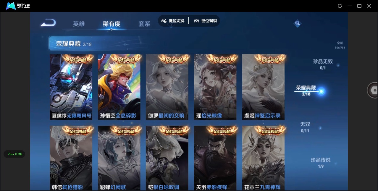 - [11324481]V7 1典藏 8传说 124英雄 282皮肤 可修改实名 优质装备:鸣剑·曳影,末日机甲-孙尚香(绿蚂蚱),地狱之眼,山海·苍雷引(电光曜子),澜逐花归海 传说皮:乘龙·铭钟鼎(赵云年限) 珍宝阁皮:妄想食味,女武神,玩趣恶龙 限定皮:愿照·九州拓(澜年限),逐霄战戟,鸣野蒿,至尊宝,五谷丰年,青龙志(铠年限),游园惊梦,梁祝,天狼狩猎者,李小龙,逐梦之影,默契交锋-花木兰,孙行者,猪悟能,寅虎·赤拳(老虎年限) 史诗皮:星界战将,龙之律动,茶境仙,破空之剑,东方月初,埋骨钱,蔬乡物语(鲁班七号),超元猎域,百相守梦-黄忠,紫霞仙子,电玩小子(小书包),千年之狐,永昼,魅语,高渐离燃音魔法,蒙恬荣光圣徽,冰冠公主,偶像歌手,晚萤,电玩·爆裂旋风,末日机甲-吕布,猫狗日记-孙策,节奏热浪,水果甜心,绅士熊喵,星夜王子,心灵骇客,功夫厨神,德古拉伯爵,暗隐猎兽者,幽灵船长,鬼剑武藏,心灵战警,舞动绿茵,地狱岩魂,纤云弄巧,缤纷独角兽,乘风破浪,逐浪之夏,水晶猎龙者,曙光守护者,箭羽风息,金属风暴,原初追逐者,圣诞狂欢,圣诞恋歌,鹰眼统帅,王者之锤,黎明之约,雪上飞焰,赏金猎手,无心,未来纪元-赵云