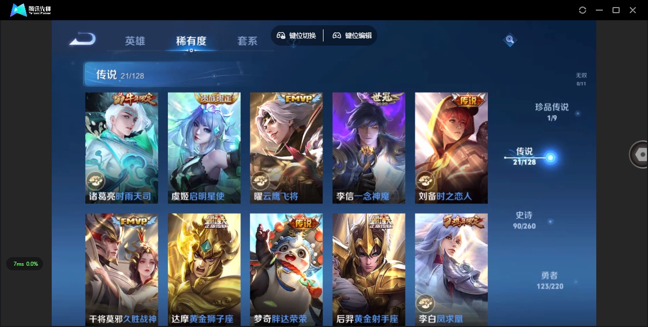 - [11745069]V7 13传说 123英雄 164皮肤 可修改实名 优质装备:黄金狮子座,久胜战神,末日机甲-孙尚香(绿蚂蚱),地狱之眼,胖达荣荣,超时空战士-狄仁杰,末日机甲-孙策,无双飞将,画中仙 传说皮:落雪白狼 珍宝阁皮:妄想食味,胡桃夹子 限定皮:鸣野蒿,无限倾心-项羽,怒海麟威,降魔,冰锋战神,御风骁将(吕布年限) 史诗皮:星界战将,怒海争锋,苍穹之光,黄金分割率,特工魅影,永昼,蒙恬荣光圣徽,偶像歌手,电玩·爆裂旋风,乱世虎臣,节奏热浪,摇滚巨星,天才门将,星夜王子,功夫厨神,德古拉伯爵,幽灵船长,鬼剑武藏,地狱岩魂,乘风破浪,逐浪之夏,水晶猎龙者,金属风暴,原初追逐者,鹰眼统帅,魅力维加斯,黎明之约,雪上飞焰,无心,未来纪元-赵云