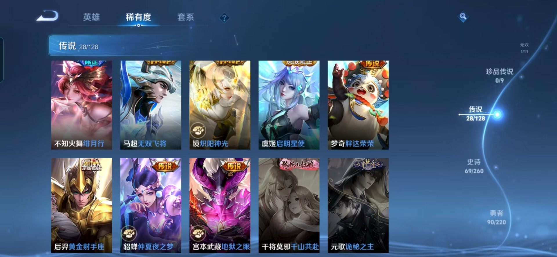 - [11688900]V8 11传说 124英雄 174皮肤 可修改实名 优质装备:末日机甲-孙尚香(绿蚂蚱),地狱火,零号·赤焰 传说皮:幻光神枪 珍宝阁皮:妄想食味 限定皮:鸣野蒿,至尊宝,白虎志(电光耗子),凤求凰(白切鸡),凤凰于飞,太华(伽罗年限),武陵仙君(小桃花),时之彼端,魔法小厨娘,梁祝,天狼狩猎者,李小龙,辉光之辰,一生所爱,大圣娶亲,天魔缭乱,青春决赛季 史诗皮:百相守梦-黄忠,紫霞仙子,电玩小子(小书包),白龙吟,黄金分割率,特工魅影,千年之狐,偶像歌手,龙骑士(小龙虾),节奏热浪,修罗,女仆咖啡,摇滚巨星,水果甜心,星夜王子,功夫厨神,暗隐猎兽者,幽灵船长,鬼剑武藏,心灵战警,舞动绿茵,纤云弄巧,繁星吟游(呼啦呼啦),缤纷独角兽,逐浪之夏,曙光守护者,圣诞狂欢,圣诞恋歌,鹰眼统帅,未来纪元-赵云