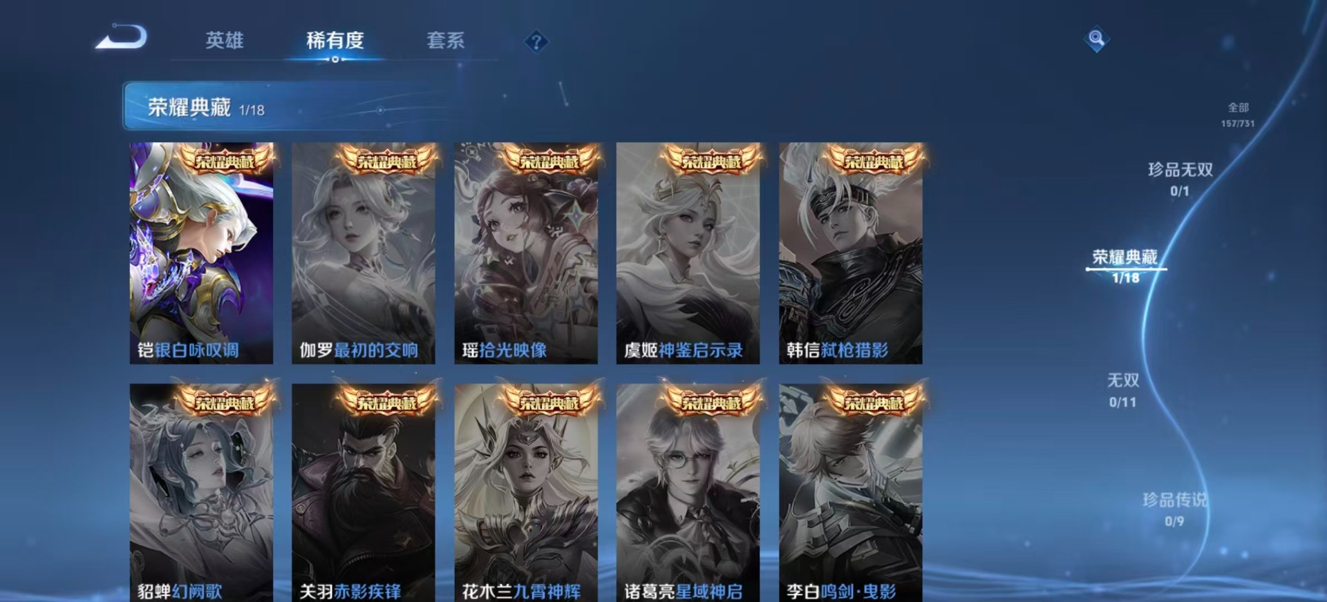 - PX_2091831-苹果Q 【可二次】 英雄数量:124 皮肤数量:262 贵族等级:贵族V8 无双限定1 荣耀典藏2 珍品传说1 传说品质20 史诗品质66器灵·螭龙剑 鸣剑曳影 弑枪猎影 器灵·落星盏 李逍遥 愿照·千秋盛 云鹰飞将 无双飞将 山海苍雷引 幻光神枪 愿照·九州拓 久胜战神 炽阳神光 末日机甲女 浮生妄 怒海麟威 启明星使 妄想实况 惊梅引 时之恋人男 云诺千山 鸣野蒿 霜月吟