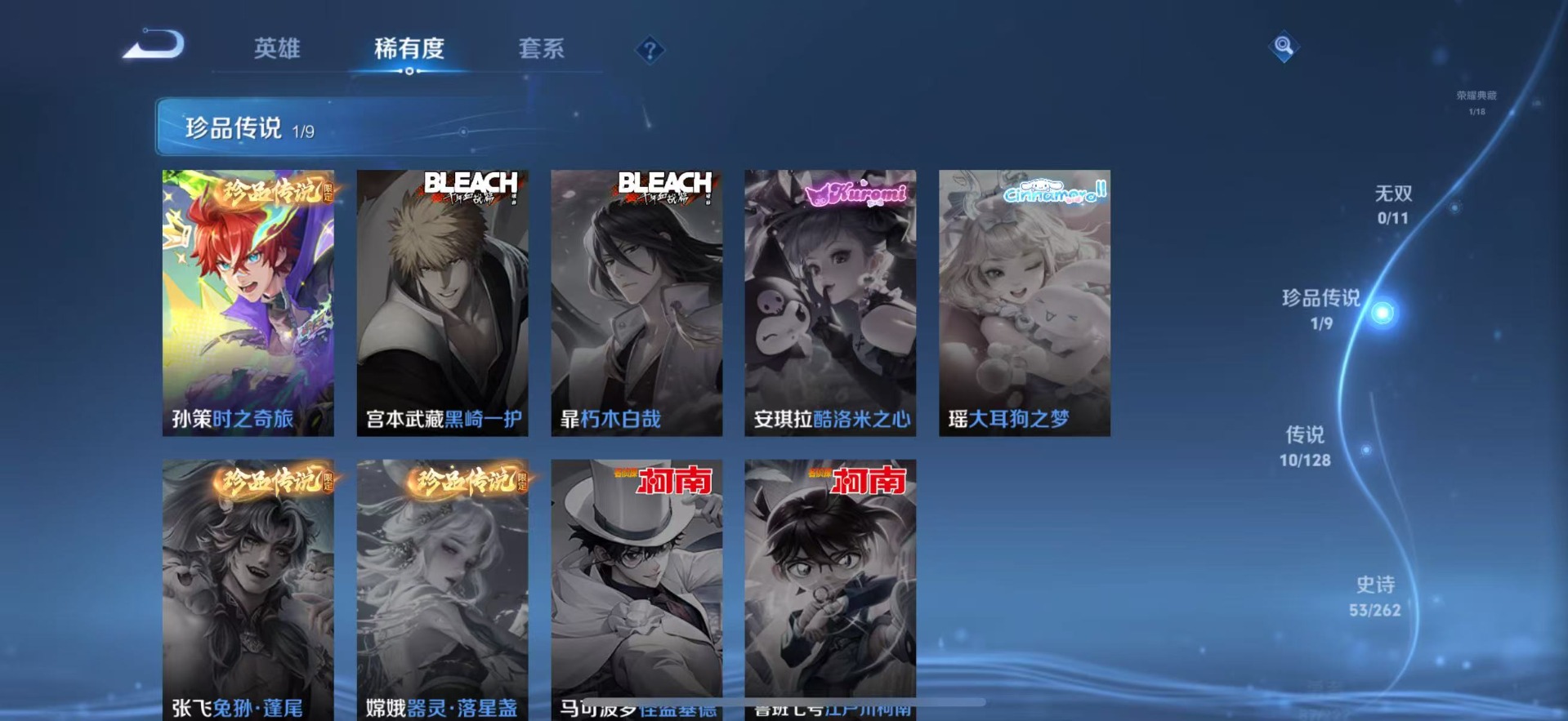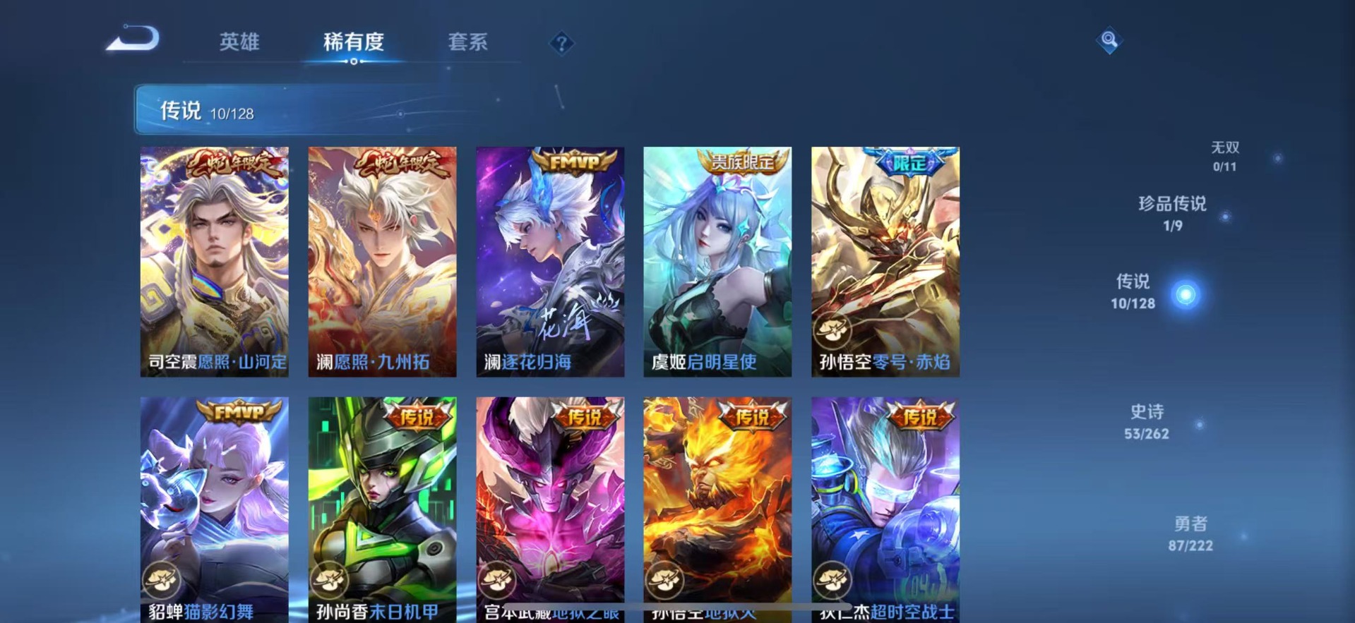 后羿如梦令,司空震愿照·山河定,裴擒虎李小龙,上官婉儿梁祝,孙悟空孙行者,孙悟空大圣娶亲,孙悟空至尊宝,妲己时之彼端,韩信飞衡,澜愿照·九州拓