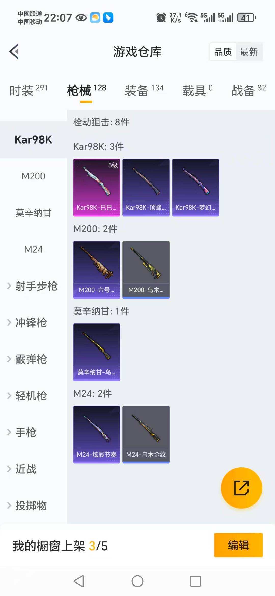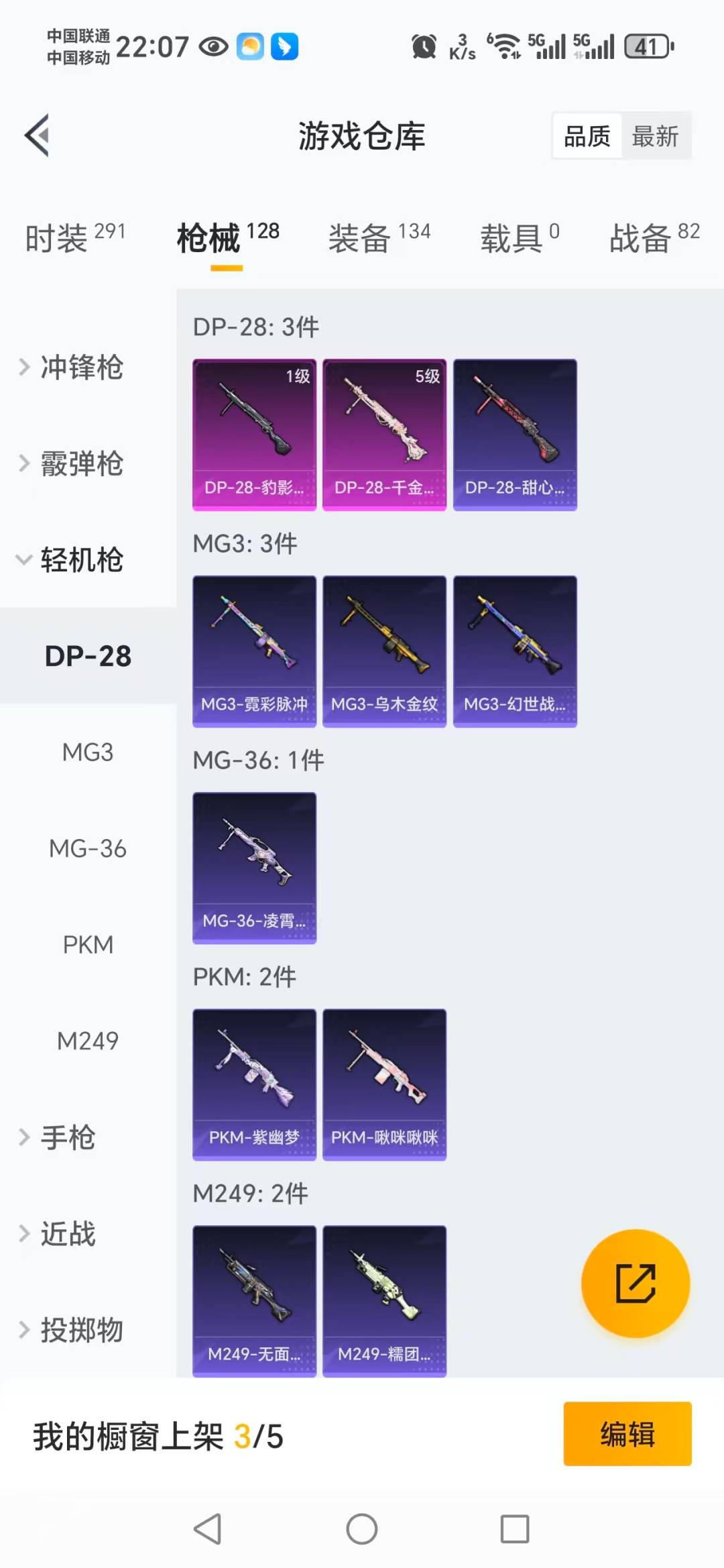 M416-风花雪月,AKM-炫紫旋律,Kar98K-巳巳如意,野牛-青空秋雨,DP-28-千金淑猫