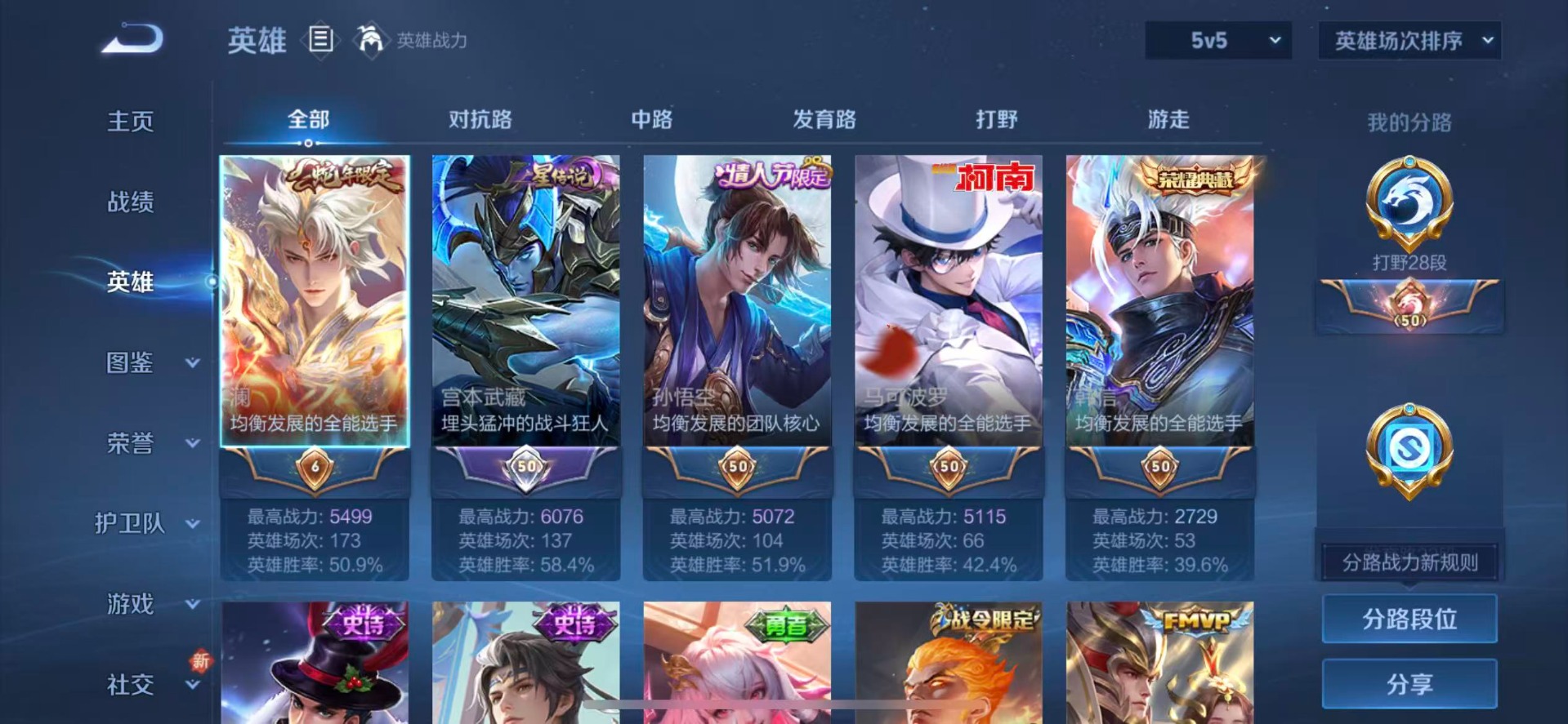 - [12176344]V6 1典藏 2传说 123英雄 144皮肤 可修改实名 女号 优质装备:天鹅之梦(小乔典藏),朵莉亚心动手记 传说皮:幻光神枪 珍宝阁皮:蔷薇恋人 限定皮:梁祝 史诗皮:化蝶舞,龙之律动,蒙犽顽岩魄,琥珀纪元伽罗,乘龙·忆丹青(大乔年限),百相守梦-黄忠,织梦人,遇见神鹿,紫霞仙子,江河有灵,高渐离燃音魔法,青蛇,龙骑士(小龙虾),猫狗日记-孙策,猫狗日记-大乔,乱世虎臣,节奏热浪,女仆咖啡,摇滚巨星,水果甜心,心灵骇客,暗隐猎兽者,幽灵船长,鬼剑武藏,心灵战警,诗语江南,缤纷独角兽,乘风破浪,逐浪之夏,水晶猎龙者,圣诞恋歌,鹰眼统帅,魅力维加斯,未来纪元-赵云
