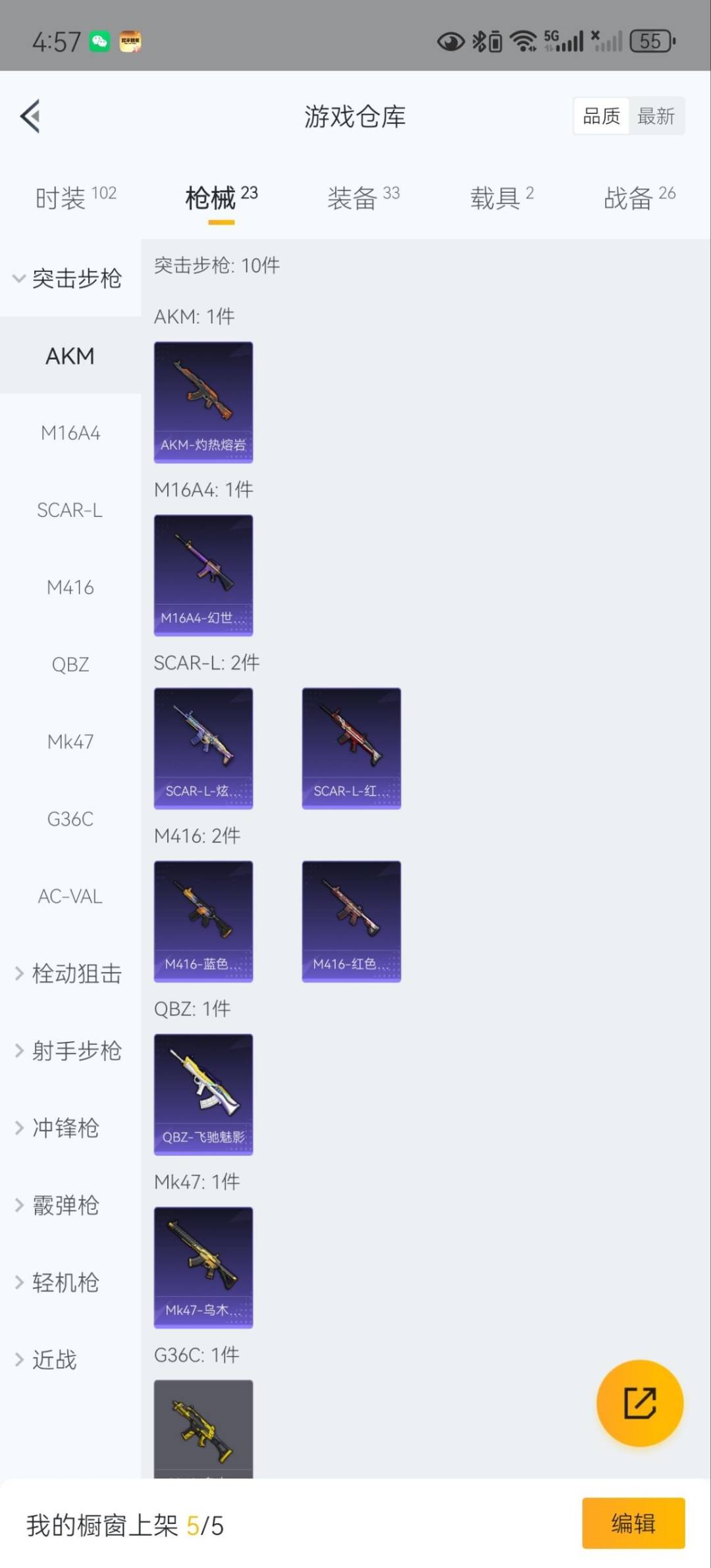 - PX_2104552-??螂】YXc9201【可二次】【因赛季更新游戏段付以上号为准!】 安卓Q- 7王牌印记 历史超级王牌7星 108套装 167枪皮 【5载具】 阿斯顿马丁S红色 特斯拉R水滴蓝 特斯拉R沁心粉 海龙奔腾 双刃魅影红色 【2稀有】 AKM-百万伏特 浪漫天命 【8粉装】 红螳螂 金风玉露 青空秋雨 粉色回忆 绚金战神 显圣真君 暗夜玫瑰 沙场疾风 【3特效枪】 M416-心之恋