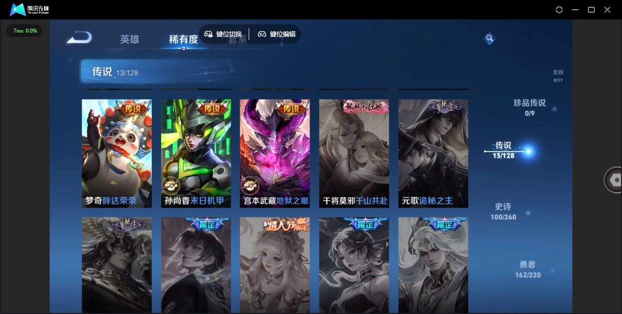 [12204039]V7 1典藏 13传说 125英雄 345皮肤 可修改实名 优质装备:九霄神辉(木兰典藏),云鹰飞将(小将军),绛天战甲(鸡嘴战神),黄金白羊座,久胜战神,炽阳神光,末日机甲-孙尚香(绿蚂蚱),地狱之眼,胖达荣荣,无双飞将,涂山容容 传说皮:云诺千山 珍宝阁皮:妄想食味,蔷薇恋人,女武神 限定皮:愿照·山河定(司空震年限),鸣野蒿,至尊宝,白虎志(电光耗子),神威(电光马子),遇见飞天,高山流水,五谷丰年,青龙志(铠年限),梁祝,御风骁将(吕布年限),李小龙,圣诞老人,猪悟能,大圣娶亲,匿光追影者 史诗皮:鸭鸭历险记-刘禅,化蝶舞,灵蛊蚀心,星界战将,龙之律动,茶境仙,蒙犽顽岩魄,蔬乡物语(鲁班七号),百相守梦-黄忠,紫霞仙子,电玩小子(小书包),白龙吟,黄金分割率,特工魅影,千年之狐,永昼,江河有灵,魅语,百解令(蒙犽),高渐离燃音魔法,蒙恬荣光圣徽,无限星赏官,冰冠公主,青蛇,晚萤,电玩·爆裂旋风,龙骑士(小龙虾),末日机甲-吕布,猫狗日记-孙策,猫狗日记-大乔,乱世虎臣,节奏热浪,修罗,女仆咖啡,摇滚巨星,水果甜心,绅士熊喵,天才门将,星夜王子,功夫厨神,德古拉伯爵,暗隐猎兽者,幽灵船长,鬼剑武藏,心灵战警,舞动绿茵,地狱岩魂,纤云弄巧,繁星吟游(呼啦呼啦),拒霜思,缤纷独角兽,乘风破浪,逐浪之夏,龙鼓争鸣,月团寄思,水晶猎龙者,箭羽风息,金属风暴,原初追逐者,圣诞狂欢,圣诞恋歌,鹰眼统帅,王者之锤,暗夜贵公子,魅力维加斯,黎明之约,赏金猎手,无心,未来纪元-赵云