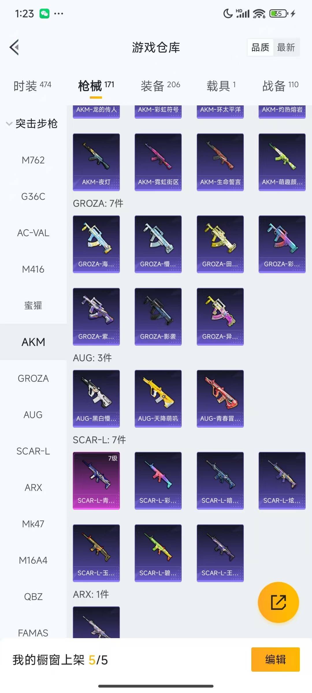 - PX_2101474-??/枪械15/装备363/载具5/战备175/王牌印记13/热力值98248/五级AKM-绿萝繁花/五级AKM-星际浪客/三级AKM-幽焰骑士/五级SCAR-L-锦绣绵绵/一级M416-心之恋语/一级M416-五爪金龙/三级M416-墨龙九天/五级M416-电玩时刻/九级M416-至情至圣/四级GROZA-香水柠檬/一级GROZA-精灵之光/五级M762-青锋波束/三级AK