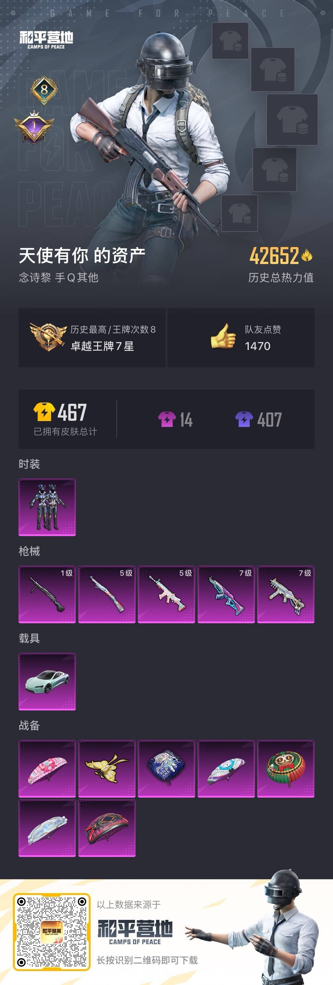 - [12135122]2粉装 5特效枪 4印记 可二次 可修改实名 优质装备:AUG星之彼岸,七级AUG-星之彼岸,雪月幻音,AMR-智耀战神,Vector-最终圣卫者,绯穹魔姬,Kar98K-巳巳如意 稀有枪皮:DP-28-豹影疾电 六级特效枪:六级AMR-智耀战神 五级特效枪:五级Kar98K-巳巳如意,五级DP-28-豹影疾电 三级特效枪:三级Vector-最终圣卫者 紫色装扮:SS23特训,SS31特训套装,冷焰舞者,霓虹热舞,SS30特训套装,云朵鹅,彩虹兔,雪绒豹,SS33特训套装,青涩时光,时希公主,爆裂葡萄,银白舞王,暖风夏荷,英勇保护者,甜心亚梦,虚音幻奏,都市漫游者,酷潮明星,荣耀,蓝海鲸歌,魅力单车,鹤鸣,黄色伏地魔,黎明保卫者,黑色伏地魔,龙的传人,龟仙人,香桃花海,柠萌假日,海岛探路者,涂山之恋,幻影武者,幻世战舞者,探宝勇士,绮丽涂鸦,白色伏地魔,破晓战魂,破蛋小黄鸡,红色运动,王牌教练,灼焰舞者,牛气满满,猛禽,特殊使命,特训学院,SS29特训,星途旅人,鱼渊荷华,玉兔迎春,燕燕于飞,巳巳如意,都市丽猫,青团波波,糖糖葫芦,棉花软糖,竞技名士,街头风暴,惊鸿侠骨,甜梦熊熊,神气柴柴,懵萌河马,SS24特训(SS24特训套装),SS25特训,锦衣飞扬,粉红小猪,蝶吟花词,智谋强哥,精神漫游,核芯基因,大橘大利,原初圣火,逆风勇士,耀粉歌者,深海来使,粉恋花,蓝冰羽,紫幽梦,SS32特训服(SS32特训套装),绯格组合,恋语绒绒,金耀舞者 优质战备:星途旅人降落伞,千金淑猫降落伞,绝色倾城飞行器,绯果甜心降落伞,终晖之翼飞行器,绯穹魔姬降落伞,荧海星豚降落伞,圣域龙灵降落伞,圣域金龙飞行器,樱桃泡泡降落伞,荒漠赏金降落伞,未来歌姬降落伞,飒粉甜心降落伞,四圣焕新降落伞
