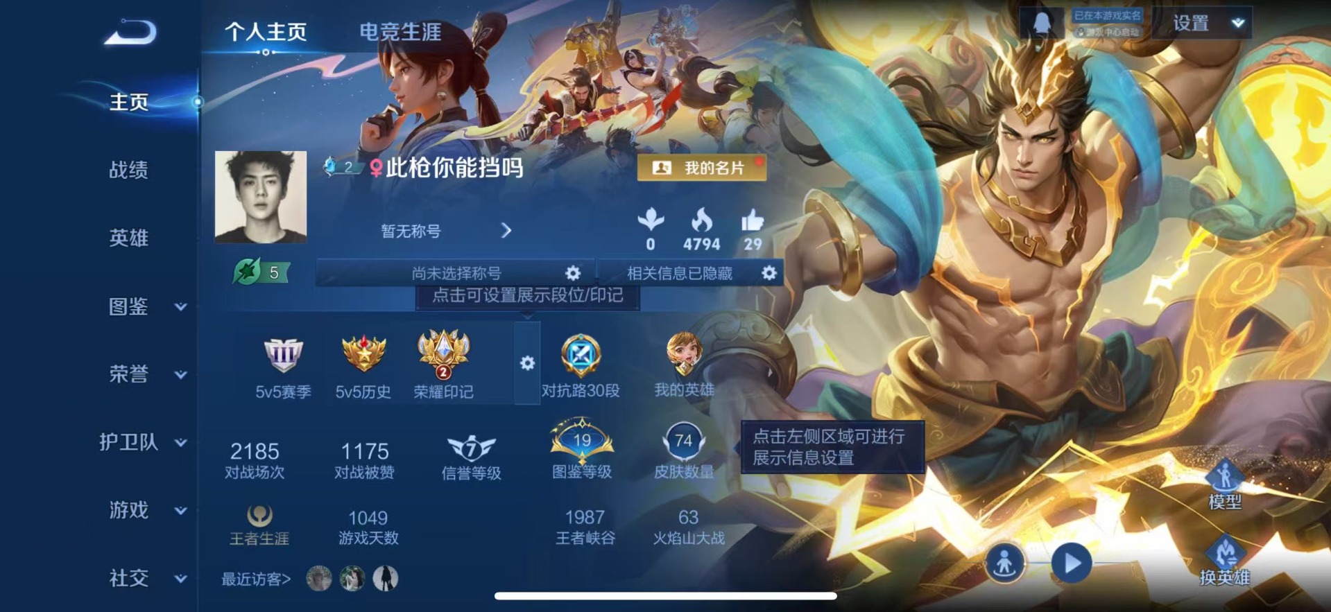 - [11687074]V7 14传说 124英雄 150皮肤 可修改实名 优质装备:云鹰飞将(小将军),炽阳神光,一念神魔,末日机甲-孙尚香(绿蚂蚱),李逍遥,游龙清影(小青龙),淬星耀世,挚爱之约,山海·苍雷引(电光曜子),电玩·雷克斯 珍宝阁皮:玩趣恶龙 限定皮:逐霄战戟,至尊宝,武陵仙君(小桃花),飞衡(韩信年限),五谷丰年,青龙志(铠年限),天狼狩猎者,孙行者,寅虎·瑞焰(虎皮蛋子),寅虎·赤拳(老虎年限),启示之音,山海·玄木吟(马可年限) 史诗皮:特工魅影,百解令(蒙犽),青蛇,晚萤,猫狗日记-孙策,节奏热浪,修罗,摇滚巨星,水果甜心,天才门将,时之奇旅-安琪拉,功夫厨神,德古拉伯爵,暗隐猎兽者,鬼剑武藏,舞动绿茵,纤云弄巧,拒霜思,缤纷独角兽,乘风破浪,水晶猎龙者,热力回旋,金属风暴,鹰眼统帅,千筹问战,无心