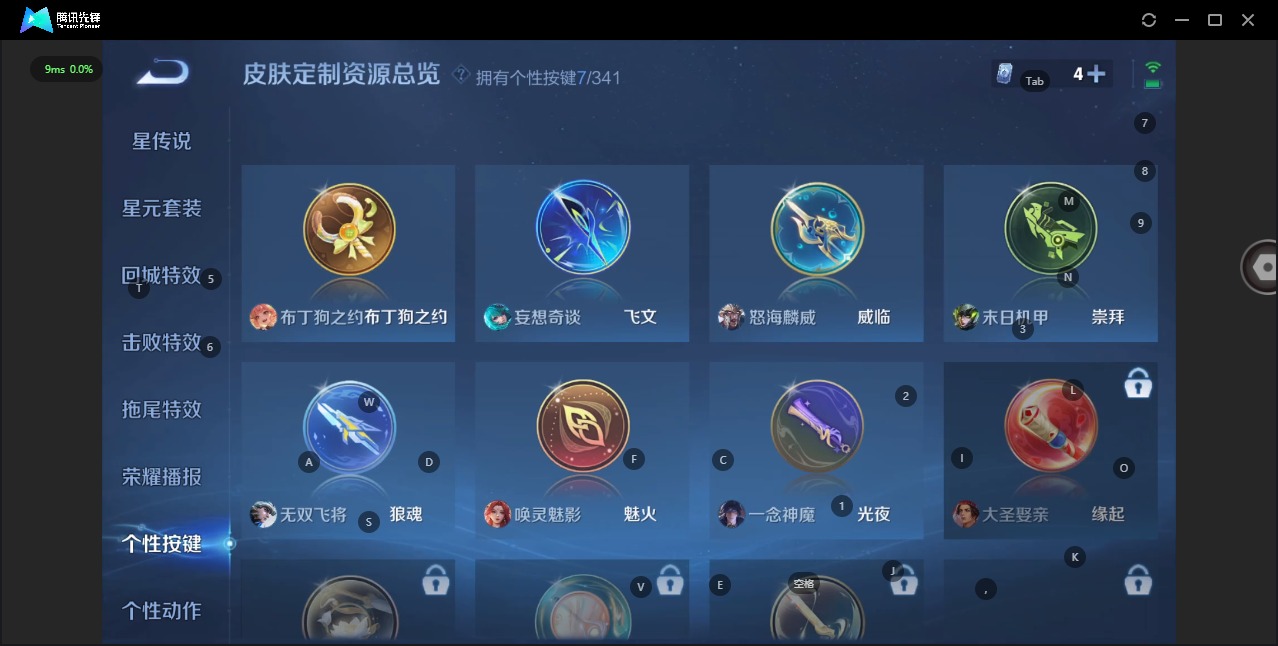 伽罗天狼溯光者,干将莫邪冰霜恋舞曲,鲁班七号乒乒小将,露娜一生所爱,杨玉环寅虎·心曲,公孙离玉兔公主,公孙离蜜橘之夏,裴擒虎李小龙,上官婉儿梁祝,花木兰默契交锋,花木兰瑞麟志,花木兰青春决赛季,女娲补天,孙悟空至尊宝,马超神威,妲己时之彼端,虞姬霸王别姬,王昭君凤凰于飞
