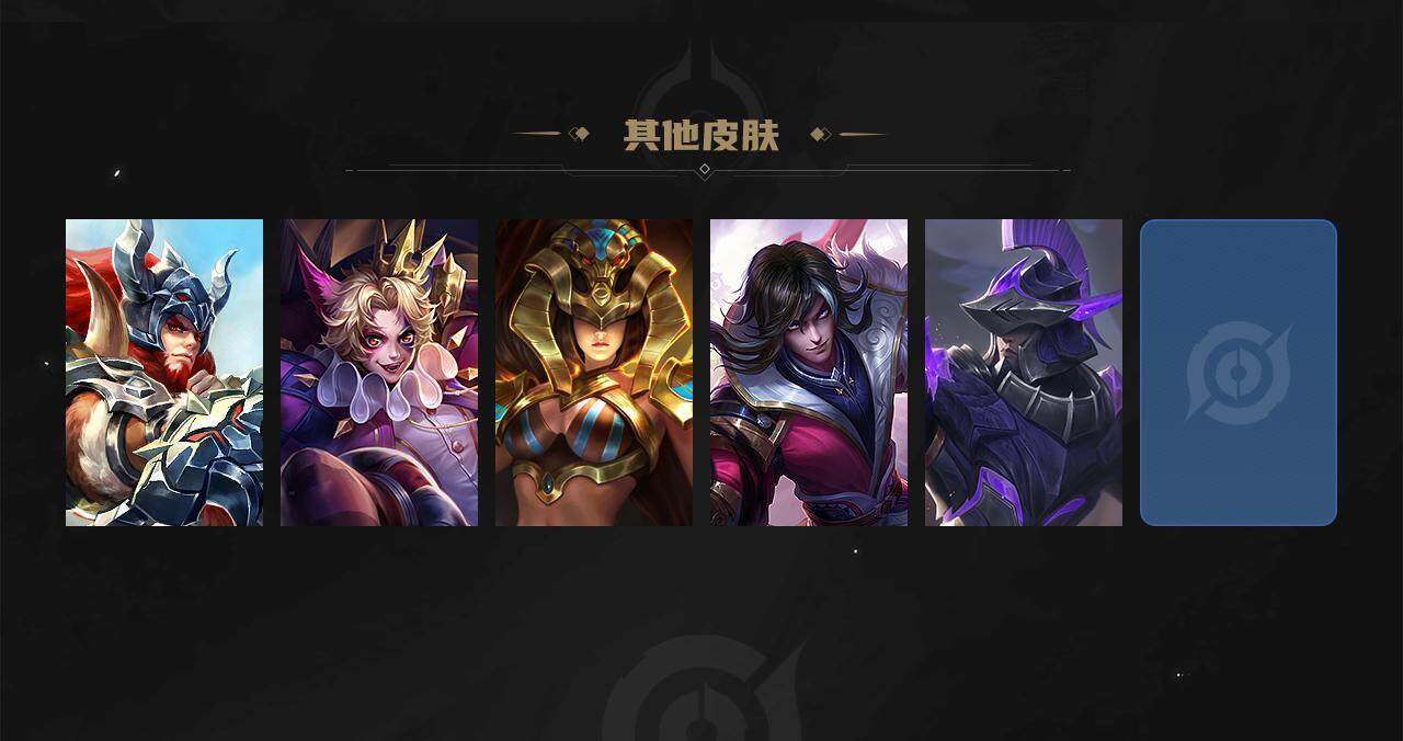 【限定皮肤】:白起狰,姜子牙天穹之誓,狄仁杰阴阳师,赵云皇家上将,墨子神迹守卫,嬴政优雅恋人,鲁班七号狮舞东方,庄周高山流水,高渐离死亡摇滚,高渐离玩趣恶龙,钟无艳王者之锤,周瑜赤莲之焰,元歌无心,夏侯惇朔风刀,甄姬游园惊梦,曹操烛龙,典韦穷奇,典韦岱宗,马可波罗暗影游猎,马可波罗山海玄木吟,狄仁杰魔术师,狄仁杰万华元夜,达摩沙漠行僧,项羽海滩派对,老夫子醍醐杖,老夫子航海奇遇记,程咬金演武夺筹,韩信飞衡,王昭君午后时光,兰陵王驯魔猎人,兰陵王金庭之子,孙悟空孙行者,孙悟空齐天大圣,牛魔御旌,后羿如梦令,后羿圣弓游侠,李元芳云中旅人,虞姬启明星使,钟馗神迹守卫,钟馗驱傩正仪,杨玉环遇见飞天,干将莫邪真爱魔法,雅典娜黎明之约,蔡文姬繁星吟游,太乙真人饕餮,太乙真人华丽摇滚,鬼谷子原初探秘者,鬼谷子五谷丰年,黄忠烈魂,苏烈千军破阵,百里玄策原初追逐者,弈星混沌棋,梦奇顽趣,沈梦溪大漠名商,裴擒虎李小龙,裴擒虎擒涛扼浪,狂铁御狮,狂铁电玩高手,李信山海炽霜斩,伽罗太华,盾山御銮,猪八戒西部大镖客,上官婉儿梁祝,嫦娥拒霜思,嫦娥暖冬兔眠,曜山海苍雷引,鲁班大师探海日志,桑启海盐诗旅,暃星界游侠,艾琳流音漫舞,司空震地狱燃心,阿古朵江河有灵,张良古海寻踪,蒙犽百解令,蒙恬荣光圣徽,鬼谷子天穹祈灯,姬小满妄想食味,刘邦剑破天穹,程咬金群星魔术团,周瑜熔金海岸