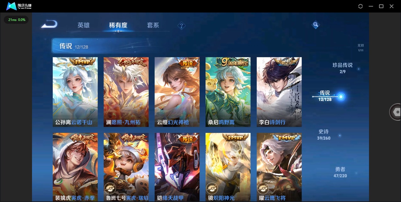 - [11853562]V10 4典藏 3无双 2珍品传说 52传说 126英雄 440皮肤 典藏英雄武则天 可修改实名 优质装备:鸣剑·曳影,星域神启(倪克斯贼亮),幻阙歌(貂蝉典藏),弑枪猎影(韩信典藏),青丘·九尾(妲己无双),碎月剑心(李白无双),花合斗,怪盗基德,器灵·落星盏,黄金狮子座,黄金射手座,绛天战甲(鸡嘴战神),黄金白羊座,猫影幻舞,炽阳神光,仲夏夜之梦(大飞蛾),音你心动-小乔,零号·赤焰,海洋之心,地狱之眼,飞鸢探春,音你心动-周瑜,胖达荣荣,李逍遥,时之恋人-刘备(电焊工),淬星耀世,超时空战士-狄仁杰,花朝如约(花篮子),无双飞将,山海·炽霜斩(李信年限),山海·琳琅生(小乔年限),浮生妄,青丘·九尾,百相守梦(张飞),电玩·雷克斯,鹤羽星尊,灼幽烈阳,永恒水手月亮,夜礼服假面,小动物乐团,澜逐花归海,艾琳觅芳踪,云中君群星魔术团,涂山容容 传说皮:乘龙·淬吴钩(孙策年限),幻光神枪 珍宝阁皮:胡桃夹子,女武神 限定皮:愿照·九州拓(澜年限),愿照·众生和(妲己年限),鸣野蒿,至尊宝,白虎志(电光耗子),凤求凰(白切鸡),太华(伽罗年限),异界灵契(白毛香),傲雪梅枪,补天,前尘镜,星穹之声,神威(电光马子),飞衡(韩信年限),遇见飞天,诗剑行,怒海麟威,五谷丰年,青龙志(铠年限),冰锋战神,岱宗(典韦年限),天狼绘梦者,李小龙,玄武志(苏烈年限),朱雀志(守约年限),霸王别姬-虞姬,大圣娶亲,天魔缭乱,青春决赛季,云端筑梦师,热情桑巴,美猴王,寅虎·赤拳(老虎年限),无尽星芒,唐三藏,枫霜尽,匿光启智者,梦圆繁星 史诗皮:鸭鸭历险记-刘禅,化蝶舞,灵蛊蚀心,星界战将,龙之律动,石田雨龙,茶境仙,炽弈燎原,破空之剑,战舞者,涂山红红,东方月初,蒙犽顽岩魄,琥珀纪元伽罗,上官婉儿群星魔术团,蔬乡物语(鲁班七号),曹操夜都魔契,百相守梦-百里守约,百相守梦-黄忠,织梦人,遇见神鹿,紫霞仙子,苍穹之光,电玩小子(小书包),黄金分割率,特工魅影,千年之狐,永昼,江河有灵,雪夜绮愿(周瑜),百解令(蒙犽),高渐离燃音魔法,蒙恬荣光圣徽,无限星赏官,匿光破解者,冰冠公主,偶像歌手,晚萤,暗夜猫娘,银翎春语,龙骑士(小龙虾),末日机甲-吕布,猫狗日记-孙策,猫狗日记-大乔,乱世虎臣,节奏热浪,女仆咖啡,摇滚巨星,水果甜心,绅士熊喵,天才门将,星夜王子,心灵骇客,功夫厨神