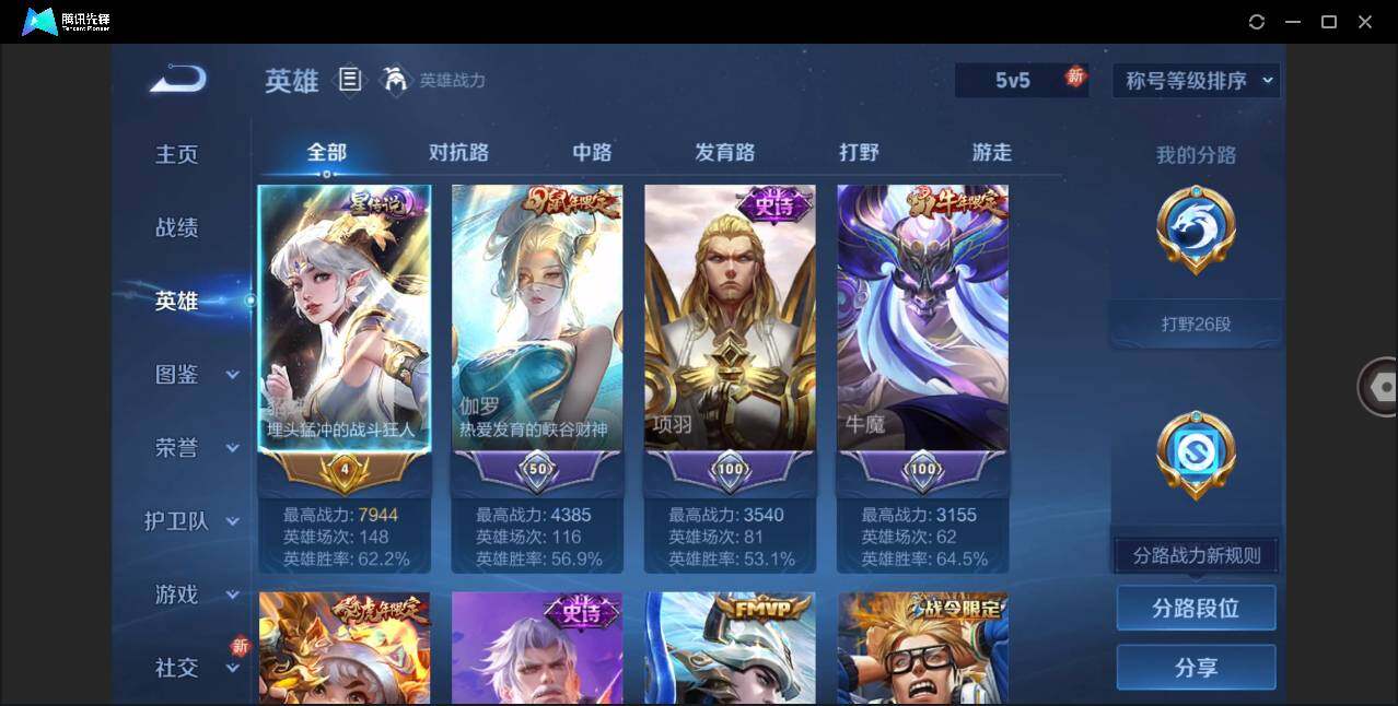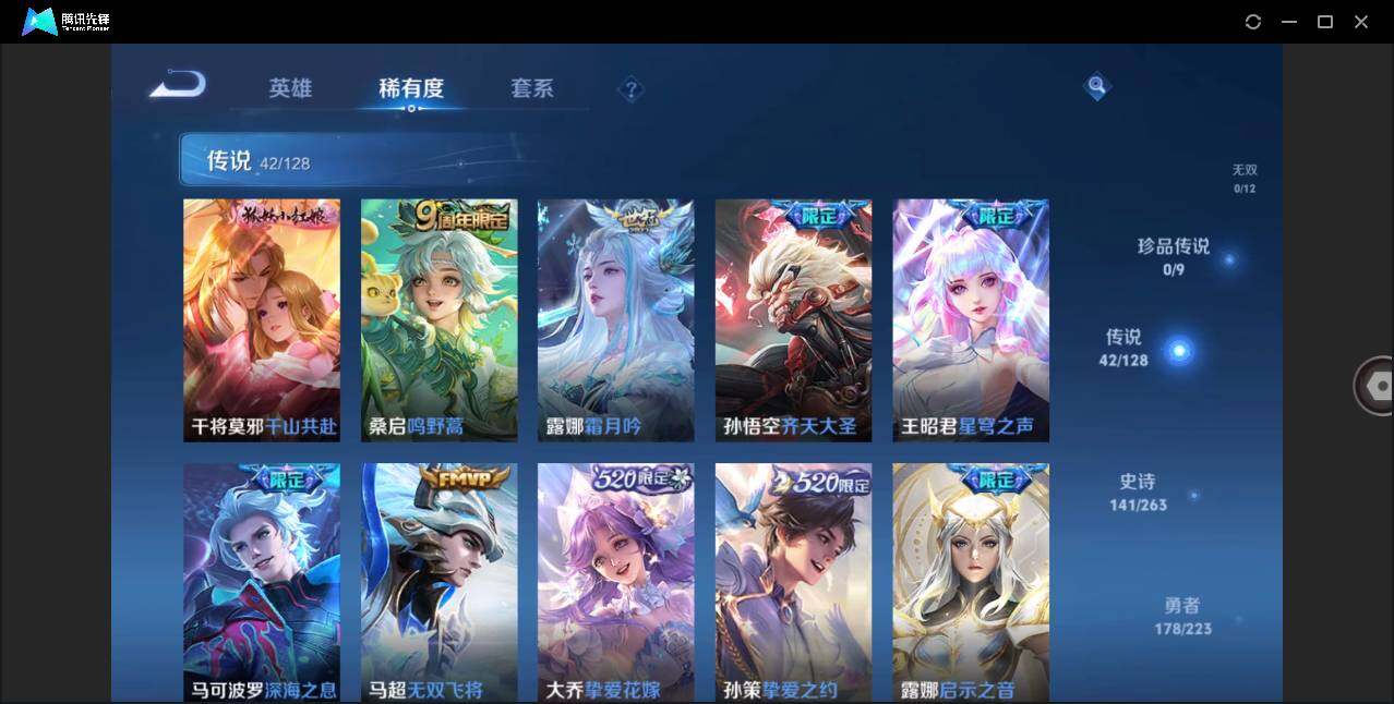 - [11497575]V6 4传说 122英雄 181皮肤 可修改实名 传说皮:仲夏夜之梦(大飞蛾),一念神魔,久胜战神 珍宝阁皮:蔷薇恋人,女武神 限定皮:鸣野蒿,高山流水,五谷丰年,李小龙,美猴王 史诗皮:星界战将,蒙犽顽岩魄,紫霞仙子,苍穹之光,黄金分割率,特工魅影,千年之狐,高渐离燃音魔法,百解令(蒙犽),蒙恬荣光圣徽,末日机甲-吕布,水果甜心,天才门将,星夜王子,功夫厨神,暗隐猎兽者,鬼剑武藏,心灵战警,缤纷独角兽,乘风破浪,逐浪之夏,水晶猎龙者,箭羽风息,金属风暴,原初追逐者,圣诞狂欢,圣诞恋歌,鹰眼统帅,魅力维加斯,黎明之约,无心,未来纪元-赵云