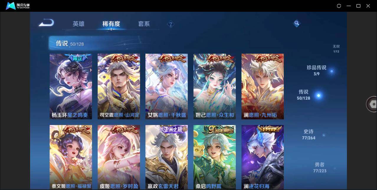 赵云龙胆,黄忠烈魂,张飞虎魄,马超神威,后羿辉光之辰,庄周玄嵩,典韦岱宗,甄姬幽恒,韩信飞衡,孙膑天狼运算者,雅典娜神奇女侠,大乔白鹤梁神女,孙尚香异界灵契,孙悟空孙行者,镜匿光追影者,云中君时之祈愿,夏侯惇匿光决锋者,后羿无尽星芒,马可波罗深海之息,金蝉唐三藏,鲁班大师匿光启智者,妲己时之奇旅,王昭君星穹之声,不知火舞绯月行,上官婉儿神器·万象笔,盾山梦圆繁星,墨子降魔,李白诗剑行,马可波罗山海·玄木吟,盘古冰霜神祇,瑶山海·碧波行,桑启鸣野蒿,艾琳陌上桑,澜愿照·九州拓,蔡文姬愿照·福禄聚,虞姬愿照·岁时盈,司空震愿照·山河定,妲己愿照·众生和,女娲愿照·千秋盛