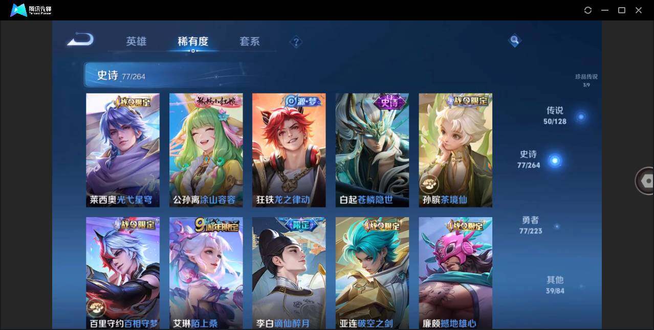 - [11788579]V7 1典藏 5传说 124英雄 208皮肤 可修改实名 优质装备:神鉴启示录,黄金白羊座,山海·琳琅生(小乔年限) 珍宝阁皮:胡桃夹子,蔷薇恋人 限定皮:愿照·众生和(妲己年限),鸣野蒿,寅虎·展翼(孙膑年限),星穹之声,白晶晶,遇见飞天,高山流水,五谷丰年,如梦令-嫦娥,时之奇旅-妲己 史诗皮:蔬乡物语(鲁班七号),百相守梦-黄忠,遇见神鹿,电玩小子(小书包),黄金分割率,特工魅影,江河有灵,百解令(蒙犽),高渐离燃音魔法,青蛇,偶像歌手,电玩·爆裂旋风,暗夜猫娘,猫狗日记-孙策,猫狗日记-大乔,时之恋人-孙尚香,节奏热浪,女仆咖啡,摇滚巨星,水果甜心,天才门将,星夜王子,心灵骇客,功夫厨神,鬼剑武藏,心灵战警,舞动绿茵,地狱岩魂,纤云弄巧,繁星吟游(呼啦呼啦),拒霜思,缤纷独角兽,逐浪之夏,箭羽风息,金属风暴,圣诞恋歌,鹰眼统帅,暗夜贵公子,魅力维加斯,无心