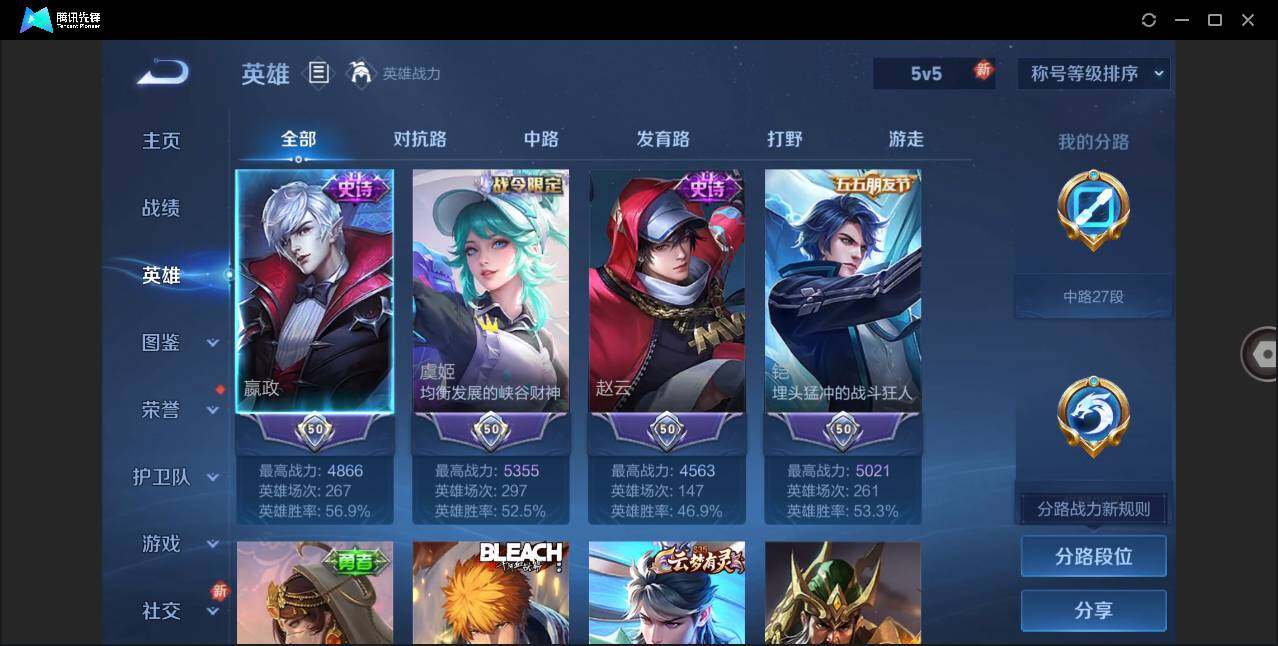 - [11517910]V5 6传说 103英雄 94皮肤 可修改实名 优质装备:地狱之眼,记忆之芯(机甲兔) 传说皮:云诺千山 珍宝阁皮:蔷薇恋人 限定皮:愿照·九州拓(澜年限),愿照·山河定(司空震年限),鸣野蒿,李小龙 史诗皮:器灵·浮梦炉,糖绘人间,星界战将,紫霞仙子,千年之狐,偶像歌手,末日机甲-吕布,猫狗日记-大乔,女仆咖啡,水果甜心,功夫厨神,鬼剑武藏,纤云弄巧,逐浪之夏,水晶猎龙者,鹰眼统帅