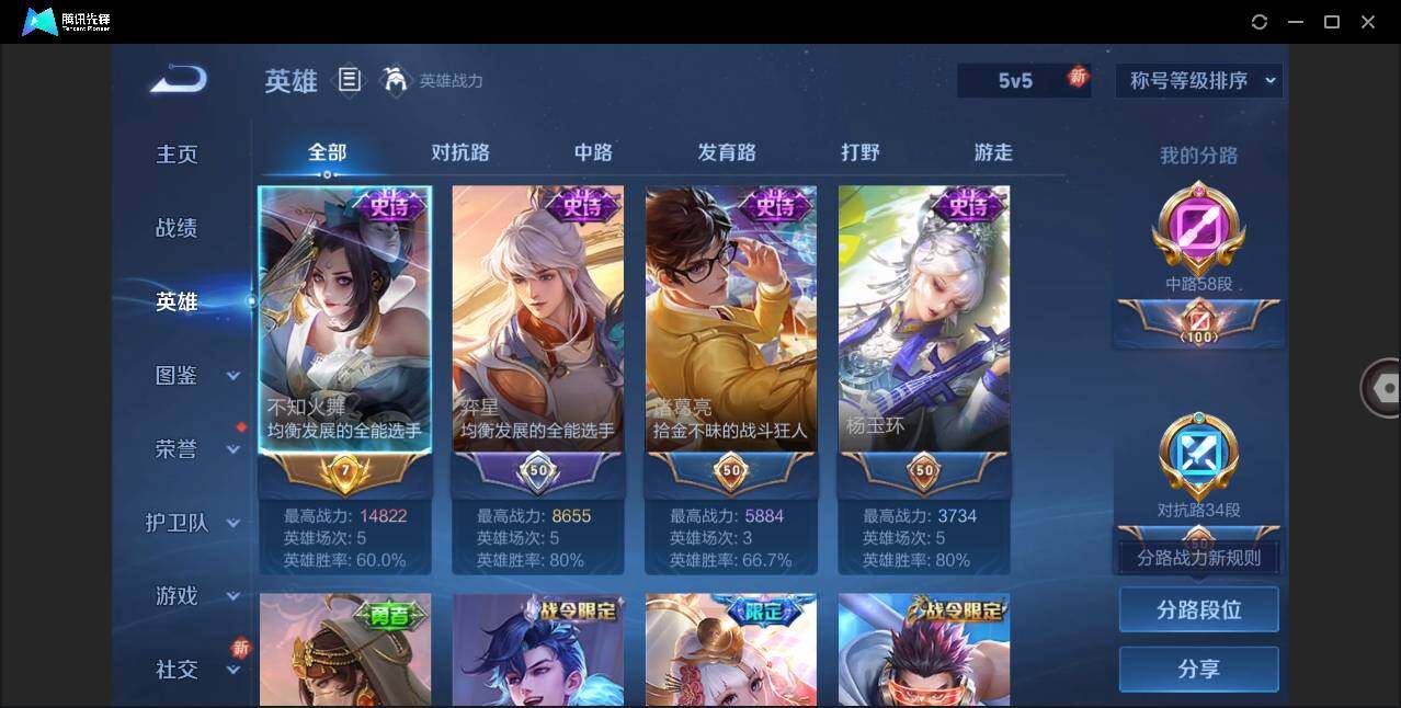 [12208548]中路58段/对抗路34段【特价急出/详情看图】:安卓Q-V7-至尊星耀III段位-126英雄-184皮肤-8传说-53史诗