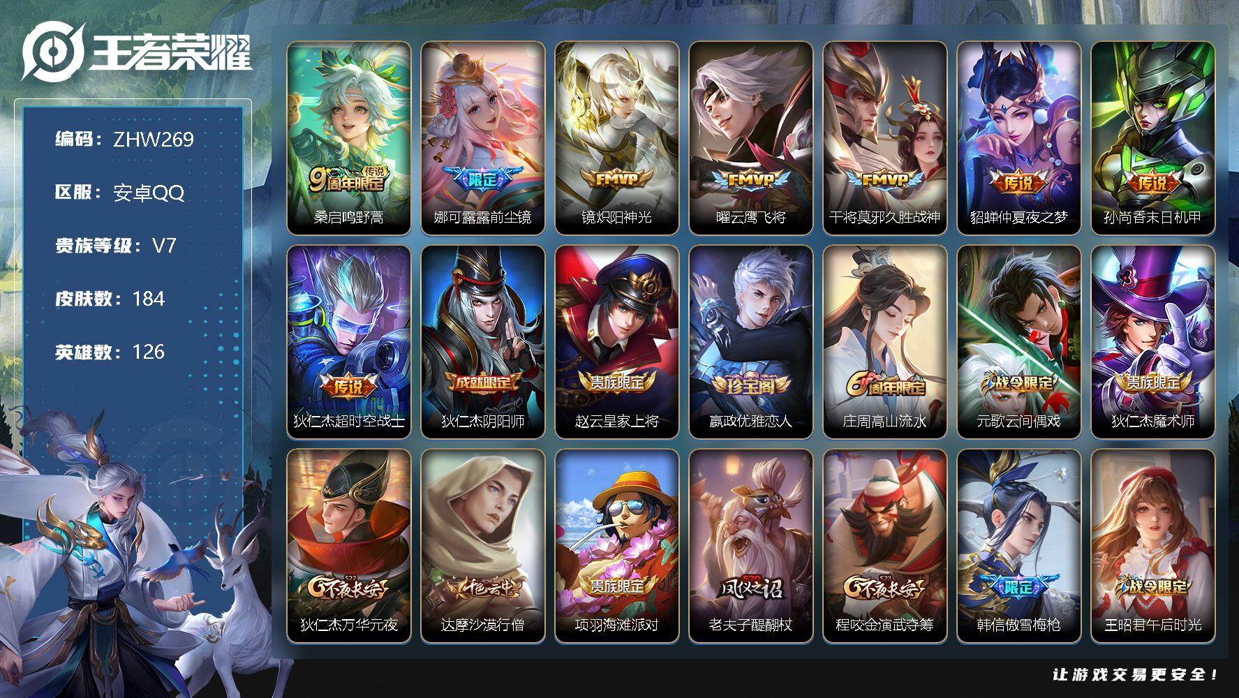 [12208548]中路58段/对抗路34段【特价急出/详情看图】:安卓Q-V7-至尊星耀III段位-126英雄-184皮肤-8传说-53史诗 【传说皮肤】:桑启鸣野蒿,娜可露露前尘镜,镜炽阳神光,曜云鹰飞将,干将莫邪久胜战神,貂蝉仲夏夜之梦,孙尚香末日机甲,狄仁杰超时空战士 【限定皮肤】:狄仁杰阴阳师,赵云皇家上将,嬴政优雅恋人,庄周高山流水,元歌云间偶戏,狄仁杰魔术师,狄仁杰万华元夜,达摩沙漠行僧,项羽海滩派对,老夫子醍醐杖,程咬金演武夺筹,韩信傲雪梅枪,王昭君午后时光,兰陵王金庭之子,娜可露露前尘镜,亚瑟潮玩骑士王,后羿辉光之辰,李元芳银河之约,李元芳云中旅人,钟馗驱傩正仪,雅典娜黎明之约,鬼谷子原初探秘者,鬼谷子五谷丰年,苏烈千军破阵,百里玄策原初追逐者,弈星混沌棋,梦奇顽趣,沈梦溪星空之诺,沈梦溪大漠名商,明世隐疑决卦,裴擒虎擒涛扼浪,狂铁电玩高手,盾山御銮,上官婉儿梁祝,嫦娥拒霜思,鲁班大师探海日志,桑启海盐诗旅,张良古海寻踪,蒙恬荣光圣徽,高渐离燃音魔法,妲己灵卜魔法,鬼谷子天穹祈灯,姬小满妄想食味,沈梦溪龙舞盛年 【年限皮肤】:后羿辉光之辰 【赛季限定】:狄仁杰万华元夜,达摩沙漠行僧,老夫子醍醐杖,程咬金演武夺筹,兰陵王金庭之子,张良古海寻踪,李元芳云中旅人,钟馗驱傩正仪,雅典娜黎明之约,鬼谷子原初探秘者,苏烈千军破阵,百里玄策原初追逐者,弈星混沌棋,梦奇顽趣,沈梦溪大漠名商,明世隐疑决卦,裴擒虎擒涛扼浪,盾山御銮,鲁班大师探海日志,桑启海盐诗旅,鬼谷子天穹祈灯,蒙恬荣光圣徽 【战令限定】:元歌云间偶戏,王昭君午后时光,亚瑟潮玩骑士王,李元芳银河之约,沈梦溪星空之诺,狂铁电玩高手,高渐离燃音魔法,妲己灵卜魔法 【史诗皮肤】:鲁班七号电玩小子,露娜紫霞仙子,赵云皇家上将,甄姬冰雪圆舞曲,狄仁杰魔术师,廉颇地狱岩魂,宫本武藏鬼剑武藏,嬴政优雅恋人,妲己魅力维加斯,墨子金属风暴,吕布圣诞狂欢,曹操幽灵船长,李白千年之狐,吕布末日机甲,张飞乱世虎臣,花木兰水晶猎龙者,刘邦德古拉伯爵,夏侯惇乘风破浪,小乔缤纷独角兽,诸葛亮黄金分割率,亚瑟心灵战警,后羿辉光之辰,铠曙光守护者,蔡文姬舞动绿茵,李元芳逐浪之夏,白起星夜王子,孙策猫狗日记,狄仁杰鹰眼统帅,上官婉儿梁祝,李元芳银河之约,不知火舞魅语,百里玄策原初追逐者,元歌云间偶戏,西施诗语江南,庄周高山流水,嫦娥拒霜思,雅典娜黎明之
