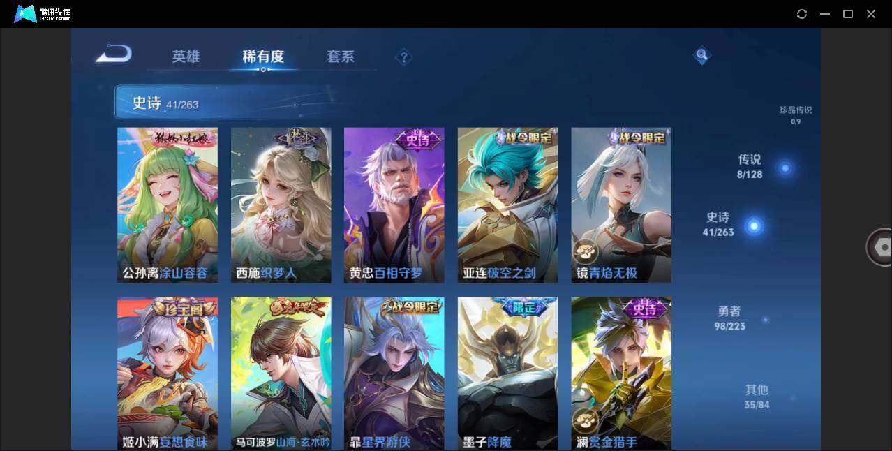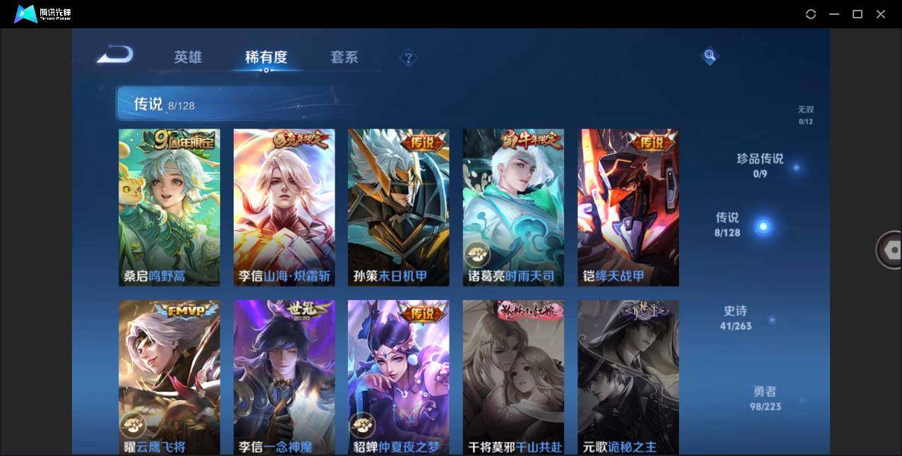 - [12277527]V8 1典藏 18传说 125英雄 290皮肤 可修改实名 优质装备:神鉴启示录,黄金狮子座,冠军飞将,炽阳神光,末日机甲-孙尚香(绿蚂蚱),地狱火,仲夏夜之梦(大飞蛾),地狱之眼,淬星耀世,无双飞将,玄雷天君 传说皮:典韦战鼓燎原,云诺千山,幻光神枪 珍宝阁皮:万物之道,女武神 限定皮:愿照·九州拓(澜年限),白虎志(电光耗子),时雨天司(水龙头),神威(电光马子),遇见飞天,高山流水,冰锋战神,游园惊梦,逐梦之星,逐梦之音,李小龙,辉光之辰,霸王别姬-虞姬,真爱至上,大圣娶亲,冰霜恋舞曲,匿光追影者,寅虎·赤拳(老虎年限) 史诗皮:苍鳞隐世,糖绘人间,狼魂孤将,化蝶舞,星界战将,龙之律动,百相守梦-百里守约,百相守梦-黄忠,紫霞仙子,苍穹之光,黄金分割率,千年之狐,江河有灵,魅语,百解令(蒙犽),冰冠公主,偶像歌手,晚萤,龙骑士(小龙虾),末日机甲-吕布,猫狗日记-孙策,乱世虎臣,节奏热浪,修罗,女仆咖啡,摇滚巨星,水果甜心,天才门将,星夜王子,心灵骇客,德古拉伯爵,暗隐猎兽者,幽灵船长,鬼剑武藏,天秀·启明,舞动绿茵,地狱岩魂,纤云弄巧,繁星吟游(呼啦呼啦),拒霜思,缤纷独角兽,乘风破浪,水晶猎龙者,金属风暴,原初追逐者,圣诞狂欢,圣诞恋歌,鹰眼统帅,王者之锤,暗夜贵公子,魅力维加斯,黎明之约,未来纪元-赵云