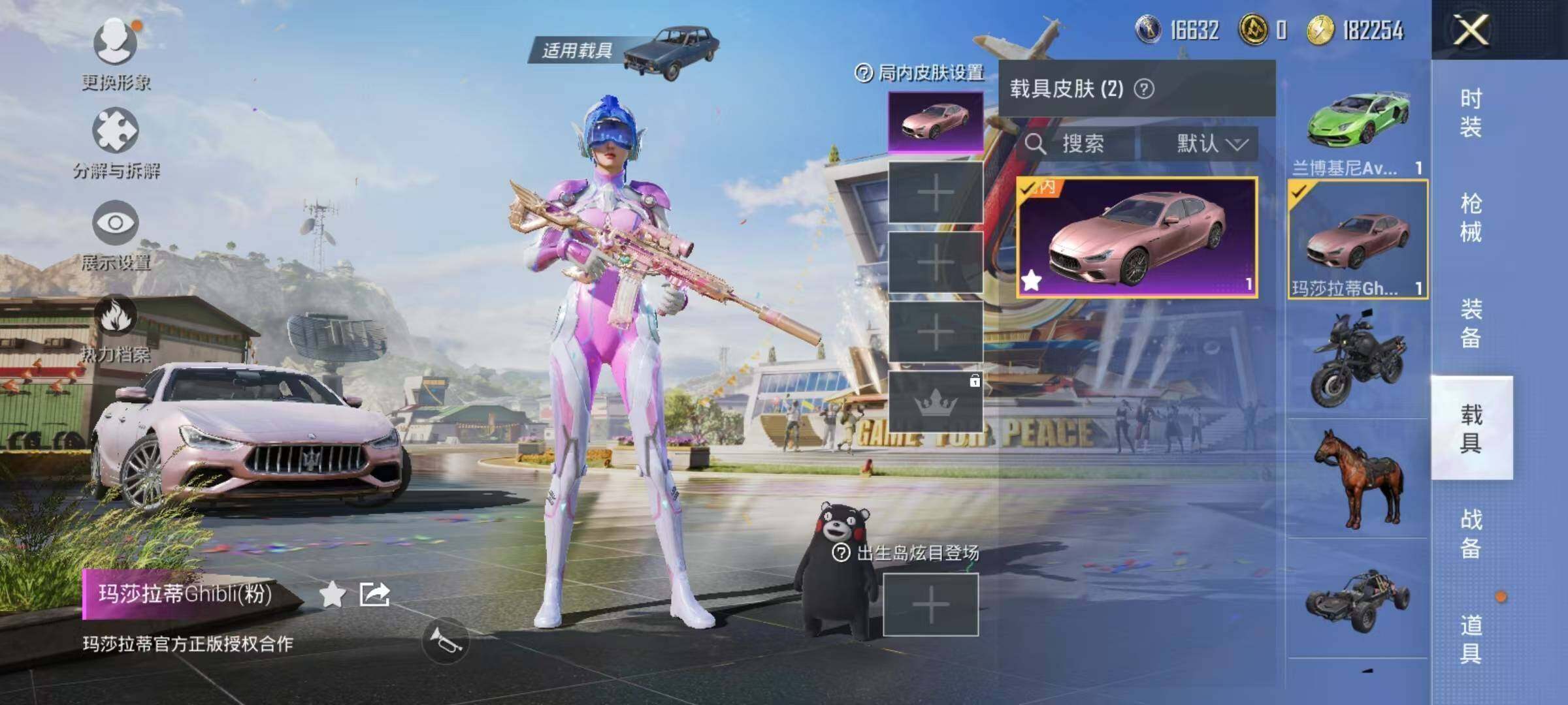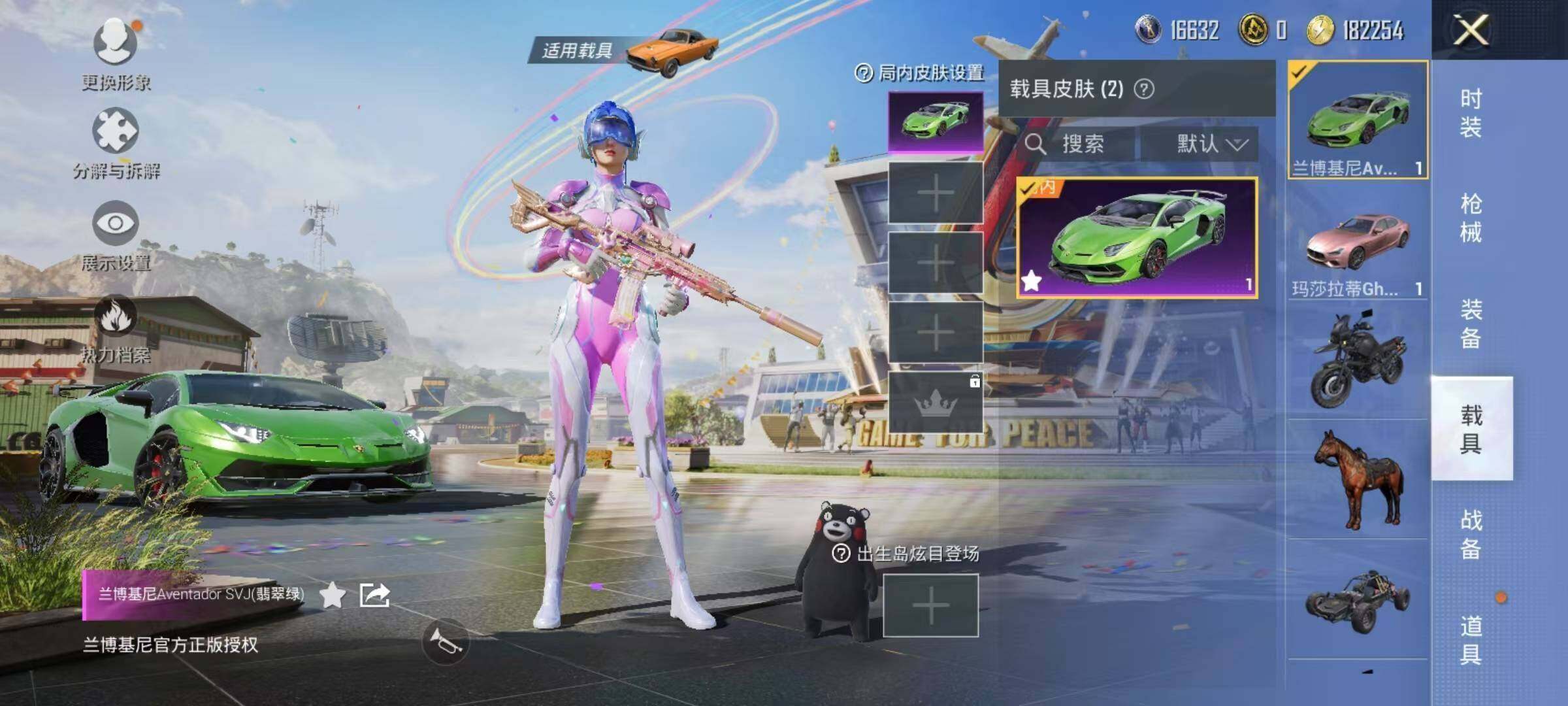 【粉色载具】:兰博基尼Aventador SVJ(翡翠绿),玛莎拉蒂Ghibli(粉),僚机-萌兔起飞