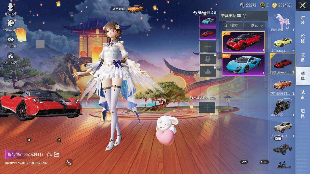 【粉色载具】:宾利欧陆GT敞篷(火焰橘),宾利添越(浅瞪羚棕),宝马M4(圣保罗黄),迈凯伦570S(天际蓝),帕加尼imola(光影红),永恒黄蜂,疾风龙骑,晶梦灵驹