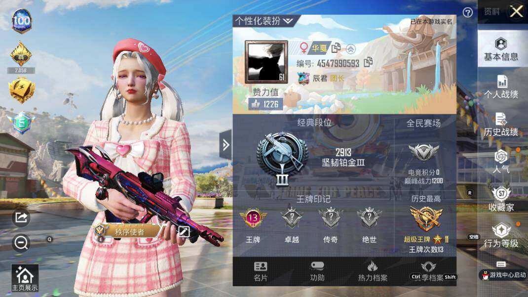 - PX_2083617-时装数: 286 枪械数: 122 战备数: 78 热门装扮: 飒粉甜心,莲影清波 稀有枪皮: GROZA旋转彩虹【7级】,SCAR-L-锦绣绵绵【5级】,Kar98K-巳巳如意【5级】