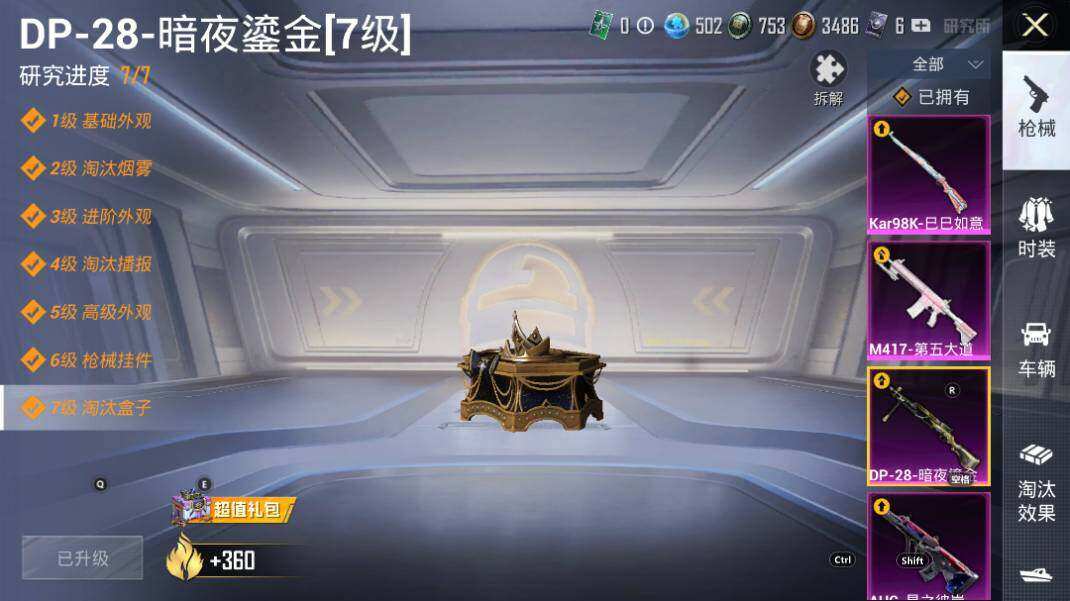 AUG-星之彼岸,Kar98K-巳巳如意,M417-第五大道,DP-28-暗夜鎏金