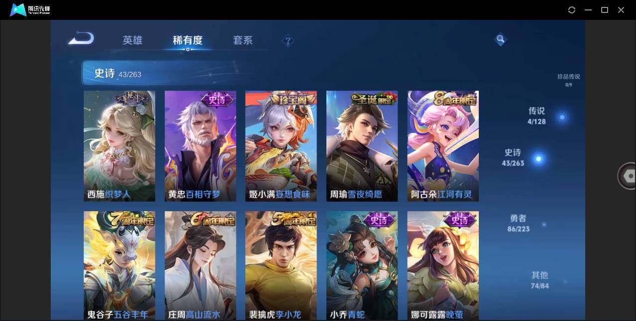 - [12191653]V8 1典藏 17传说 125英雄 319皮肤 可修改实名 优质装备:天鹅之梦(小乔典藏),云鹰飞将(小将军),黄金白羊座,云霓雀翎,末日机甲-孙尚香(绿蚂蚱),无双飞将,记忆之芯(机甲兔),涂山容容 传说皮:乘龙·问璇玑(孙尚香年限) 珍宝阁皮:妄想食味,蔷薇恋人,女武神 限定皮:愿照·九州拓(澜年限),鸣野蒿,白虎志(电光耗子),太华(伽罗年限),遇见飞天,高山流水,怒海麟威,五谷丰年,冰锋战神,武圣,梁祝,御风骁将(吕布年限),逐梦之星,虎魄,奔雷神使(牛魔年限),李小龙,逐梦之光,玄武志(苏烈年限),默契交锋-花木兰,孙行者,一生所爱,大圣娶亲,引擎之心,天魔缭乱,青春决赛季,蜜橘之夏,美猴王,匿光追影者,寅虎·御盾(廉颇年限),寅虎·赤拳(老虎年限),启示之音,山海·玄木吟(马可年限) 史诗皮:器灵·浮梦炉,化蝶舞,灵蛊蚀心,星界战将,龙之律动,紫霞仙子,电玩小子(小书包),黄金分割率,特工魅影,千年之狐,永昼,江河有灵,魅语,蒙恬荣光圣徽,无限星赏官,冰冠公主,晚萤,电玩·爆裂旋风,龙骑士(小龙虾),末日机甲-吕布,猫狗日记-孙策,猫狗日记-大乔,乱世虎臣,节奏热浪,女仆咖啡,摇滚巨星,水果甜心,绅士熊喵,天才门将,星夜王子,心灵骇客,功夫厨神,德古拉伯爵,暗隐猎兽者,幽灵船长,鬼剑武藏,暗渊魔法,心灵战警,天秀·启明,舞动绿茵,地狱岩魂,纤云弄巧,繁星吟游(呼啦呼啦),拒霜思,缤纷独角兽,乘风破浪,逐浪之夏,龙鼓争鸣,水晶猎龙者,曙光守护者,箭羽风息,金属风暴,原初追逐者,圣诞狂欢,圣诞恋歌,鹰眼统帅,王者之锤,暗夜贵公子,魅力维加斯,黎明之约,赏金猎手,寅虎·御盾,无心,未来纪元-赵云