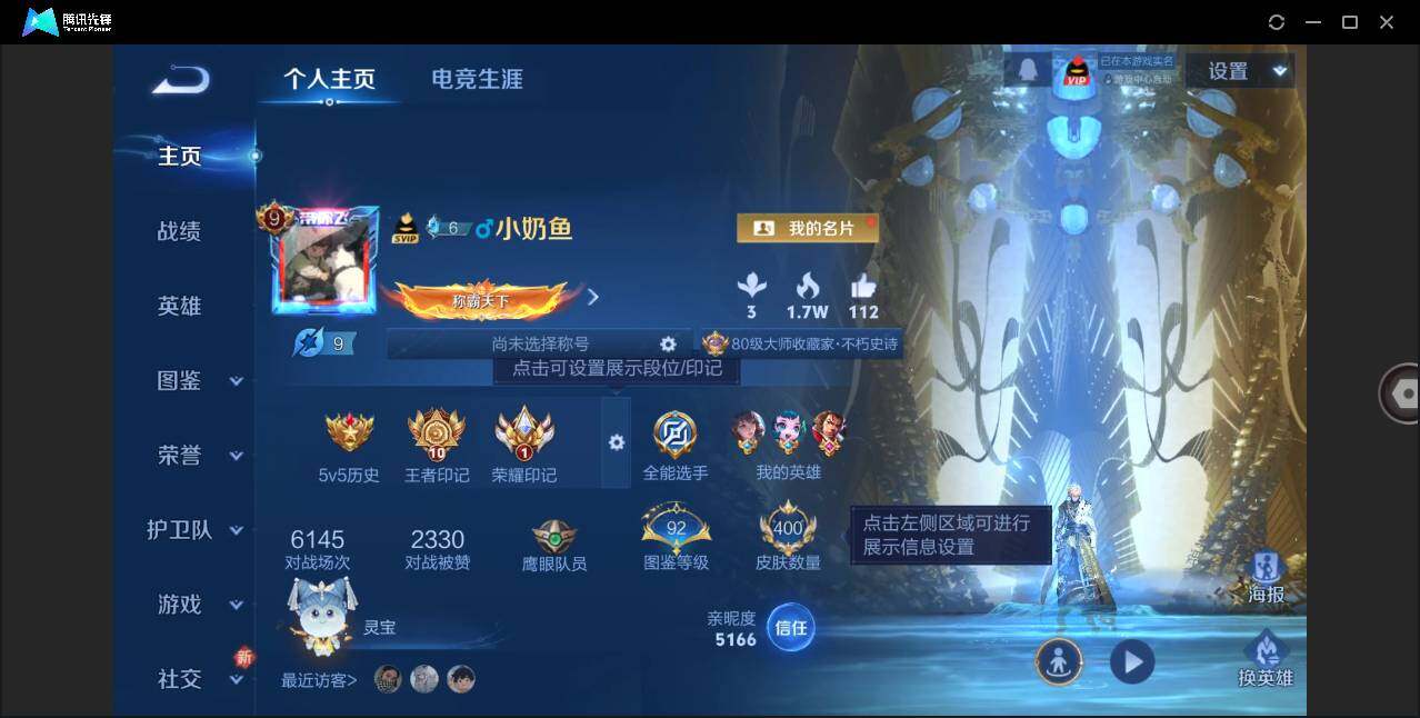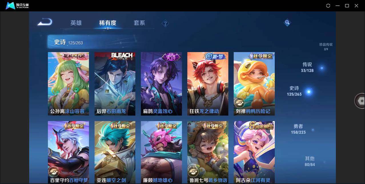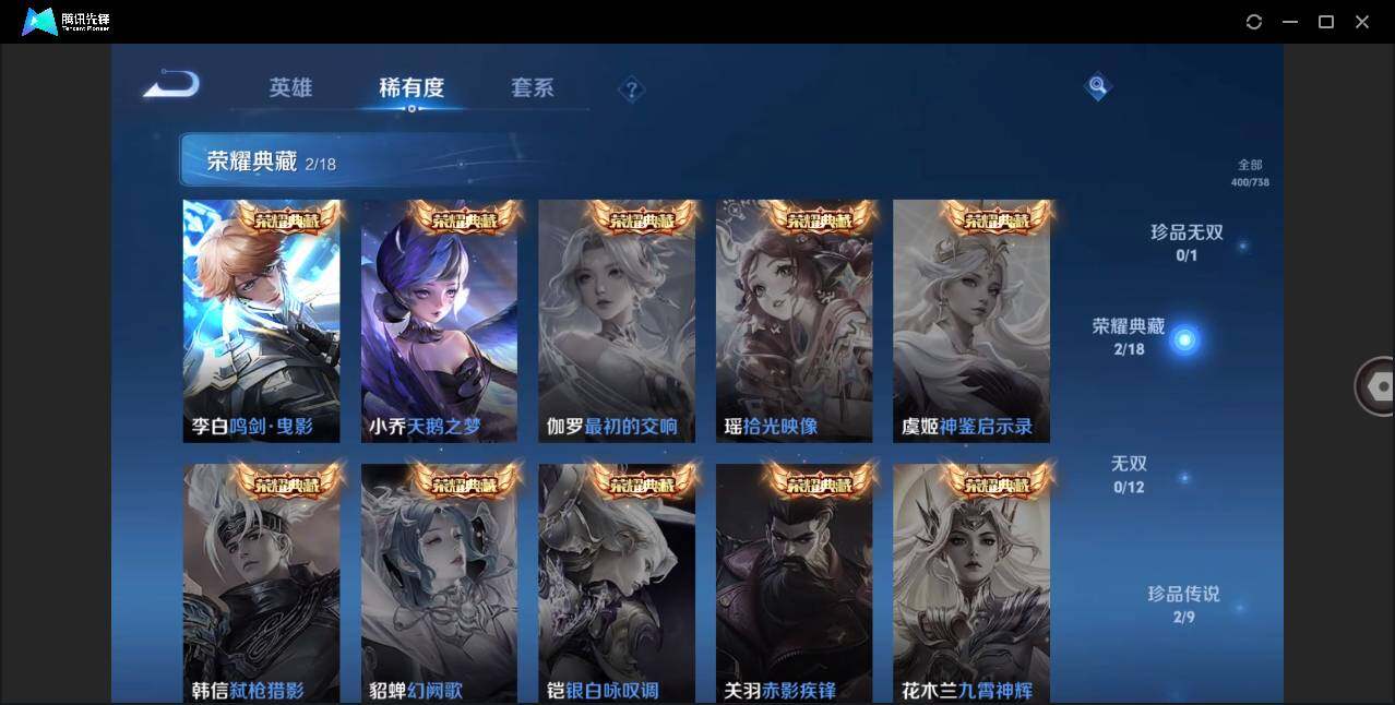 - [11860678]V6 109英雄 103皮肤 典藏英雄武则天 可修改实名 限定皮:遇见飞天,高山流水,游园惊梦,李小龙,猪悟能 史诗皮:千年之狐,冰冠公主,偶像歌手,女仆咖啡,时之奇旅-安琪拉,暗隐猎兽者,鬼剑武藏,繁星吟游(呼啦呼啦),缤纷独角兽,圣诞恋歌,鹰眼统帅,魅力维加斯