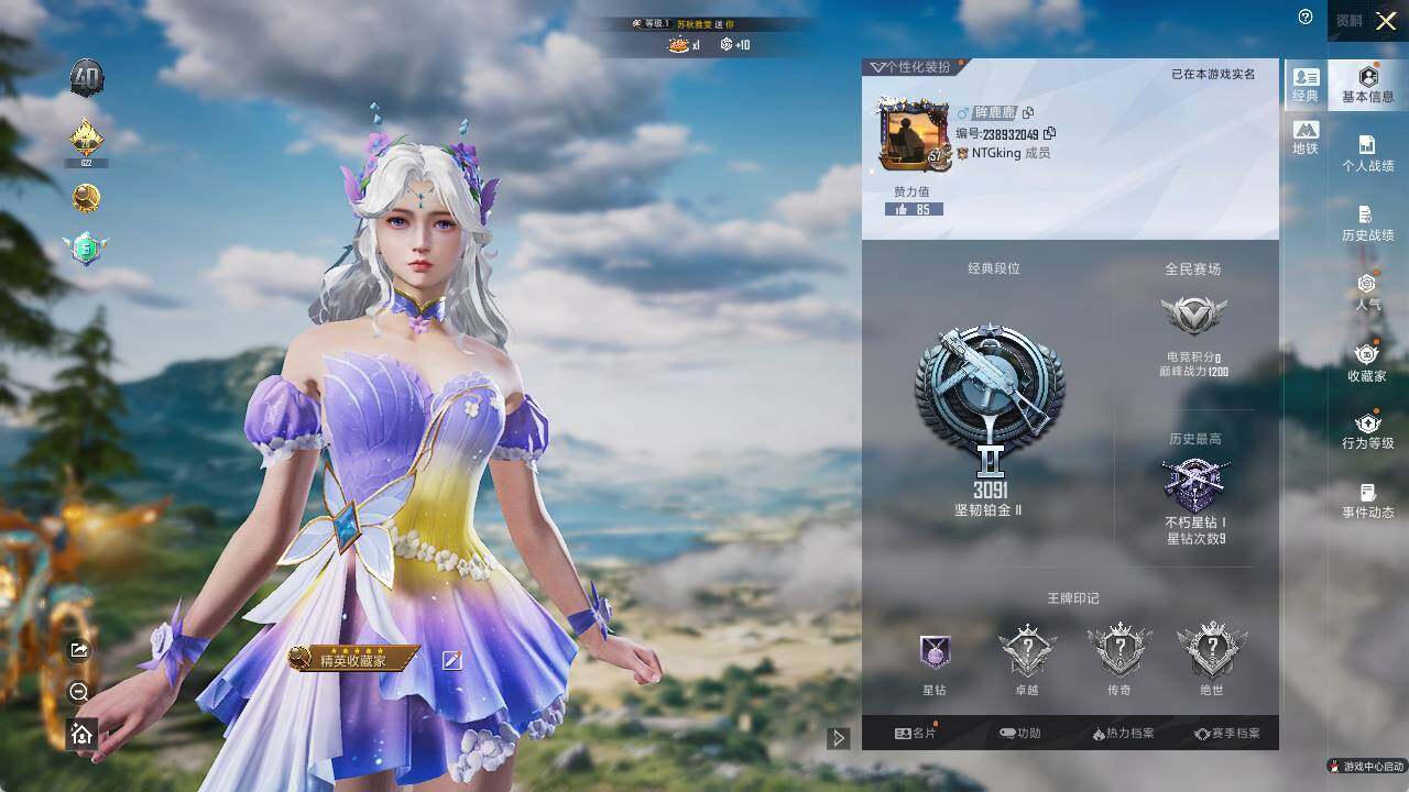 - PX_2089837-实名: 可修改 贵族等级: V5 英雄数: 103 皮肤数: 71 传说皮: 一念神魔 限定皮: 李小龙,梁祝,时雨天司,朱雀志