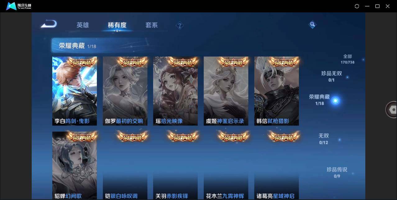 - [12186233]【商品标题】:安卓Q-V8-至尊星耀II段位-125英雄-271皮肤-3典藏-0珍品无双-0无双-0珍品传说-14传说-79史诗 【荣耀典藏】:夏侯惇无限飓风号,李白鸣剑曳影,花木兰九霄神辉 【传说皮肤】:司空震愿照山河定,澜逐花归海,夏洛特浮生妄,孙尚香异界灵契,镜炽阳神光,虞姬启明星使,李信一念神魔,伽罗太华,张良黄金白羊座,达摩黄金狮子座,后羿黄金射手座,李白凤求凰,孙尚香末日机甲,狄仁杰超时空战士 【限定皮肤】:白起狰,狄仁杰阴阳师,小乔纯白花嫁,赵云皇家上将,妲己时之彼端,嬴政白昼王子,孙尚香异界灵契,鲁班七号狮舞东方,高渐离玩趣恶龙,钟无艳超时空战士,芈月重明,吕布猎兽之王,周瑜赤莲之焰,元歌无心,夏侯惇朔风刀,甄姬落雪兰心,曹操烛龙,典韦穷奇,典韦蓝屏警告,马可波罗暗影游猎,狄仁杰魔术师,狄仁杰万华元夜,达摩沙漠行僧,项羽海滩派对,老夫子醍醐杖,关羽冰锋战神,程咬金演武夺筹,露娜一生所爱,兰陵王驯魔猎人,兰陵王金庭之子,孙悟空至尊宝,孙悟空大圣娶亲,孙悟空孙行者,牛魔御旌,李元芳银河之约,李元芳云中旅人,虞姬启明星使,钟馗神迹守卫,钟馗驱傩正仪,杨玉环遇见飞天,女娲朔望之晖,哪吒逐梦之翼,干将莫邪冰霜恋舞曲,雅典娜单词大作战,雅典娜黎明之约,蔡文姬繁星吟游,太乙真人饕餮,鬼谷子原初探秘者,鬼谷子五谷丰年,苏烈千军破阵,百里玄策原初追逐者,百里守约朱雀志,弈星混沌棋,梦奇顽趣,沈梦溪星空之诺,沈梦溪大漠名商,明世隐疑决卦,裴擒虎李小龙,裴擒虎擒涛扼浪,狂铁御狮,米莱狄御霄,云中君纤云弄巧,伽罗太华,盾山御銮,猪八戒西部大镖客,上官婉儿梁祝,嫦娥拒霜思,嫦娥暖冬兔眠,蒙犽狂想玩偶喵,鲁班大师探海日志,桑启海盐诗旅,夏洛特浮生妄,暃星界游侠,艾琳流音漫舞,司空震地狱燃心,张良古海寻踪,蒙恬荣光圣徽,妲己灵卜魔法,鬼谷子天穹祈灯 【年限皮肤】:百里守约朱雀志,李白凤求凰,伽罗太华,马超神威 【赛季限定】:白起狰,芈月重明,夏侯惇朔风刀,曹操烛龙,典韦穷奇,狄仁杰万华元夜,达摩沙漠行僧,老夫子醍醐杖,程咬金演武夺筹,兰陵王金庭之子,张良古海寻踪,牛魔御旌,李元芳云中旅人,钟馗驱傩正仪,雅典娜黎明之约,太乙真人饕餮,鬼谷子原初探秘者,苏烈千军破阵,百里玄策原初追逐者,弈星混沌棋,梦奇顽趣,沈梦溪大漠名商,明世隐疑决卦,裴擒虎擒涛扼浪,狂铁御狮,米莱狄御霄,盾山御