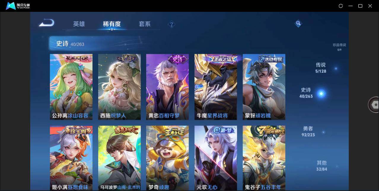 - [11658700]V7 2典藏 1传说 125英雄 141皮肤 典藏英雄武则天 可修改实名 荣耀水晶:全息碎影(猴子典藏),星空梦想(太空人) 传说皮:海洋之心 珍宝阁皮:万物之道 限定皮:大圣娶亲 史诗皮:龙之律动,幻珠鲛人,苍穹之光,白龙吟,千年之狐,冰冠公主,偶像歌手,魅语,末日机甲-吕布,女仆咖啡,水果甜心,天才门将,星夜王子,心灵骇客,功夫厨神,德古拉伯爵,暗隐猎兽者,幽灵船长,纤云弄巧,圣诞恋歌,鹰眼统帅,魅力维加斯