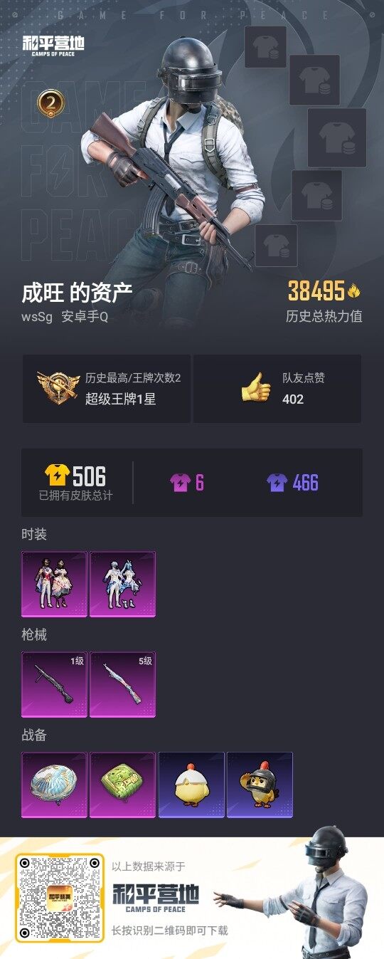 - PX_2111693- 可二次 安卓手Q-1王牌印记-5粉装-3特效枪-0载具-36066热力值-105套装-117枪皮-1卓越印记-0传奇印记, 【5粉装】,绯穹魔姬,桃源时光,罗征,智能音符,烟云彩露, 【3特效枪】,Kar98K-巳巳如意-5级,SVD-月影灵韵-7级,DP-28-豹影疾电-5级, 【4稀有紫装】,暗影哥特,深海小丑鱼,浪漫天命,雪山精英, 【103稀有时装】,SS31特训,