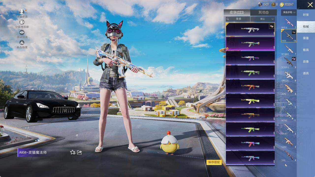 AKM-绿萝繁花,M416-电玩时刻,GROZA-镜光银凌,AUG-暖羊咩咩,M762-青锋波束,Kar98K-巳巳如意,VSS-烈焰拳霸,SVD-月影灵韵,DP-28-暗夜鎏金,DP-28-圣堂之誓