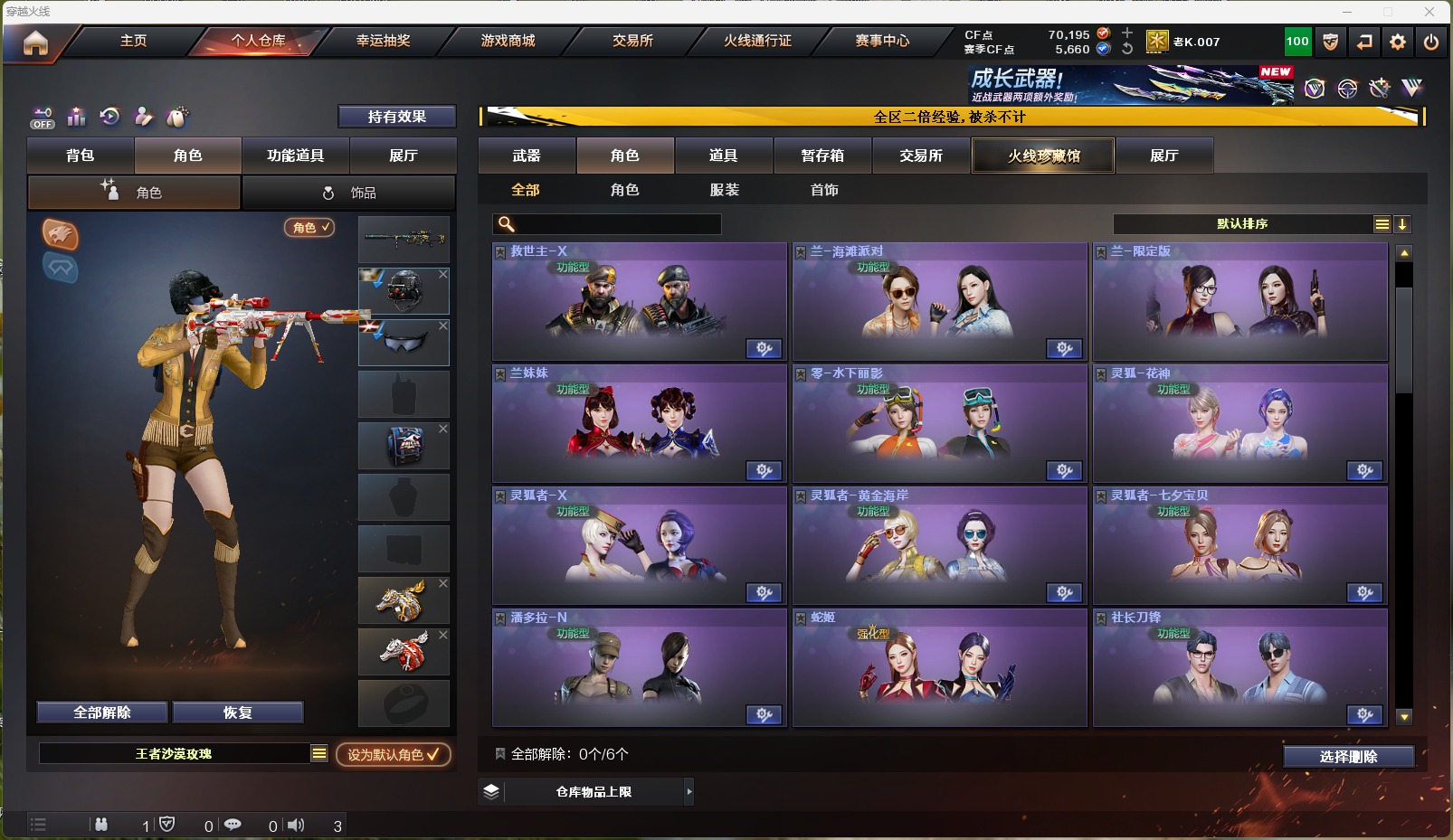 - [12116245]可二次 可修改实名 V5 1王者武器 139英雄武器 1英雄角色 261万化 大师SS 武器:M200-幻神,TAC-慈,KSG-孟获,81式-光明之神,巴雷特-毁灭,M4A1-堕天神,M4A1-死神,M4A1-雷神,AK47-燎天净火,AK47-黑武士,M4A1-黑龙,M4A1-黑骑士,AK47-木兰,98K-黑骑士,QBZ19-天使,QBZ03-金色蔷薇,QBZ03-死神,AUG-机械纪元,刘易斯-天使,QBB95-极光,双持斯泰尔-天使,MK5-极光,M4A1-龙血,M4A1-运输船,M4A1-心动次元,AK47-猩红传说,AK47-心动次元,AK47-血武士,M200-心动次元觉醒,98K-星神,09式狙-天神,AWM-裁决,AWM-天龙,AK12-天启,SCAR-探星者,M4A1-夏清,CBJ-MS-毒蜂,加特林-堡垒,地狱火,地狱烈炎,CZS2-心动次元,AA12-火药觉醒,M1216-血月,地狱烈樱·一觉,MK47-鼓龙,M14EBR-拂影,AK47-破空冰刃,HK416-极光,9A91-魔蜥觉醒,AN94-赳赳秦师,M4A1-太白诗仙,墨刃-幻神,穷奇铁扇,双持柯尔特-极光,M16-恶魔,沙鹰-修罗,左轮-黑武士,改装GLOCK-木兰,气手枪-血月,沙鹰-神兵修罗,手斧-机械迷城,蝴蝶刀-极光,USP-太白诗仙,百战巾帼枪,马来剑-毁灭,尼泊尔-冰锋觉醒,斩魔剑-天使,M4A1-铁胆虎魄,擎天觉醒,血阳,神罚战斧,丛林匕首-庆龙觉醒,秋逸,麒麟刺,屠龙,唐刀-大唐荣耀,血月,斩魔刀,女皇利刃-铁胆虎魄,烟雾弹-雷霆,闪光弹-雷霆,高爆手雷-雷霆,黑骑士烟雾弹,黑骑士闪光弹,黑骑士手雷,幻兽烟雾弹,幻兽闪光弹,幻兽手雷,烟雾弹-游骑兵,闪光弹-游骑兵,燃烧弹-游骑兵,高爆手雷-无限,手雷-云海游龙,掠夺者P365-虹舞,DDM4-PDW-星际宇航觉醒,巴雷特-朱雀,AWM-指南针觉醒,QBZ97-浩瀚征途,烟雾弹-神工天巧,M14EBR-葫芦山庄,蟒蛇-鼓龙,双持沙鹰-元让,龙爪手-鼓龙,鹰爪-迷城红光觉醒,气勇胆烈戟,王者之竞手雷,高爆手雷-神工天巧,分裂雷-偃蛇,SCAR-心动PICK,思召剑,破邪蛇棍觉醒,马来剑-耀金伯爵,甩棍-卧龙觉醒,烟雾弹-星际宇航,G3A3-衍神兵,闪光弹-遁天梭-飞行,烟雾弹-遁天梭-重山盾,HK417-炎龙铠甲