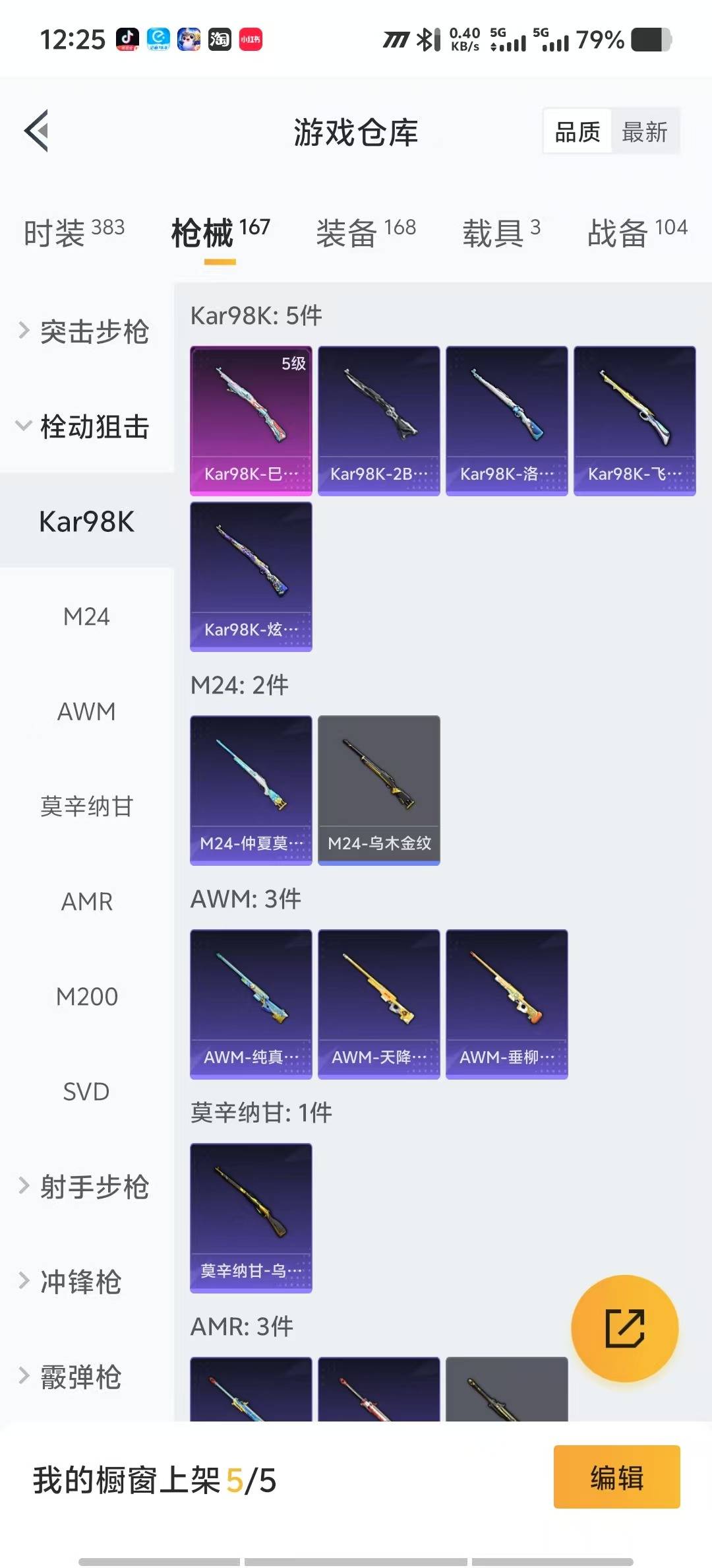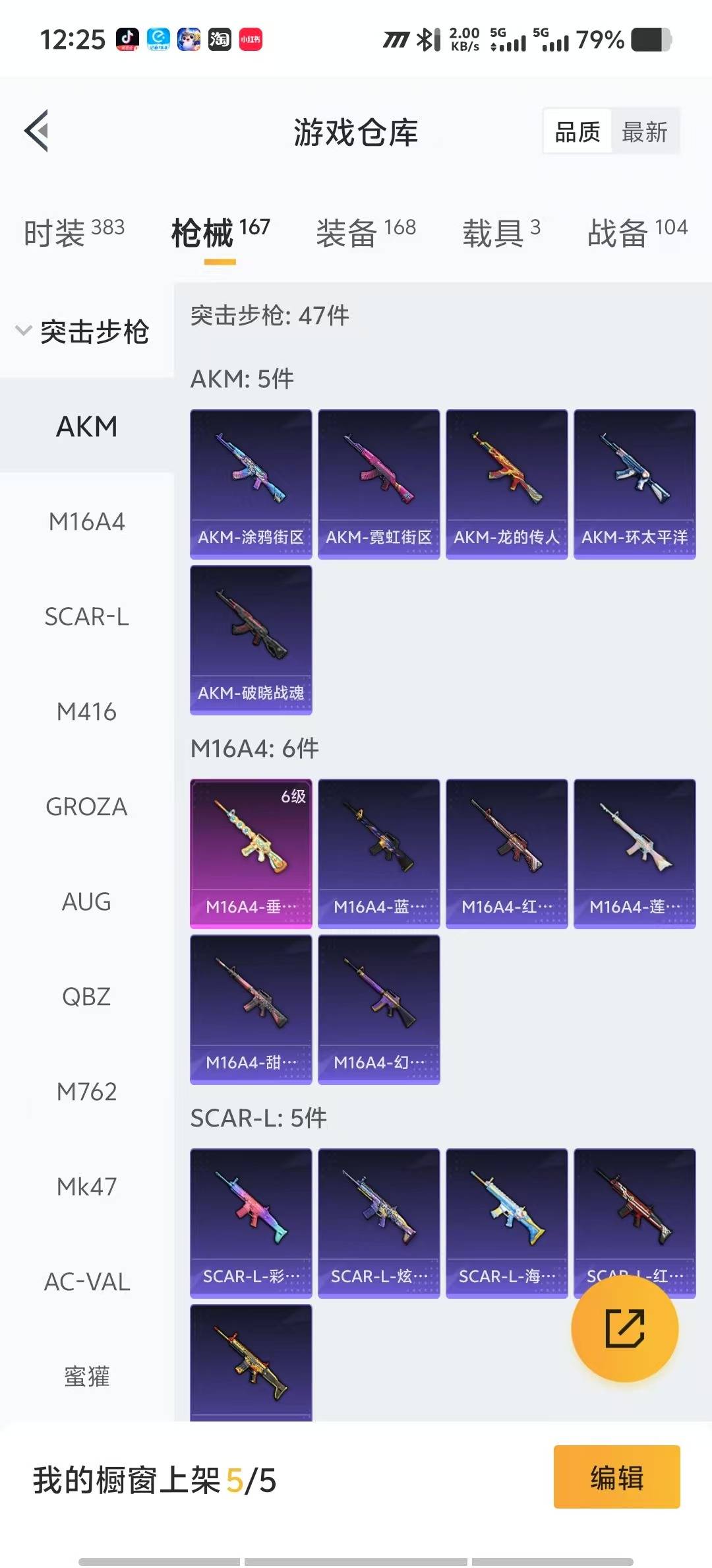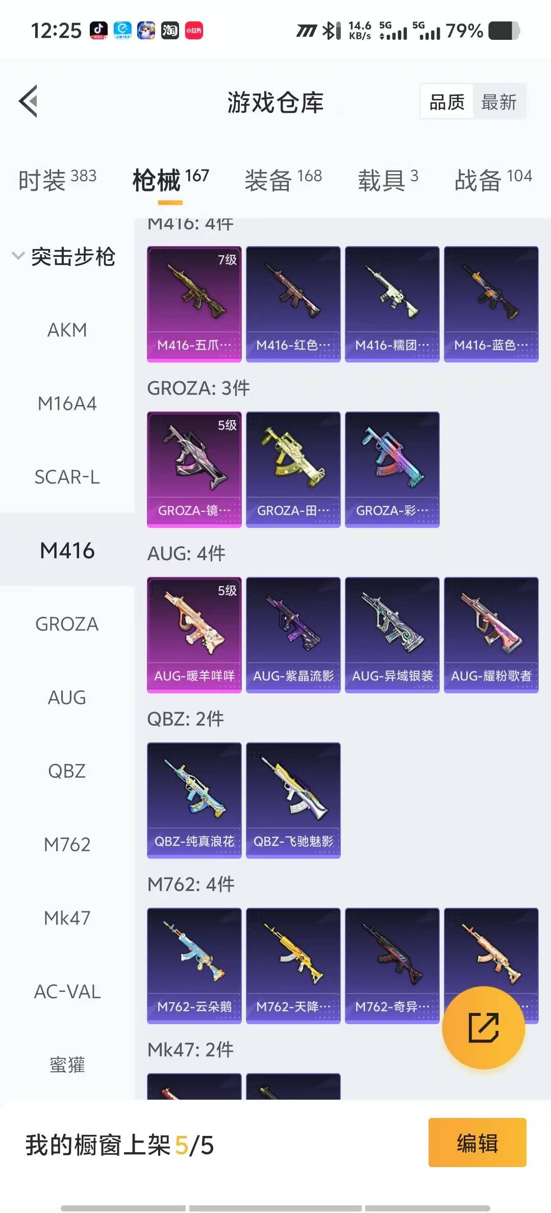 M16A4-垂柳戏鸭,M416-五爪金龙,GROZA-镜光银凌,AUG-暖羊咩咩,Kar98K-巳巳如意