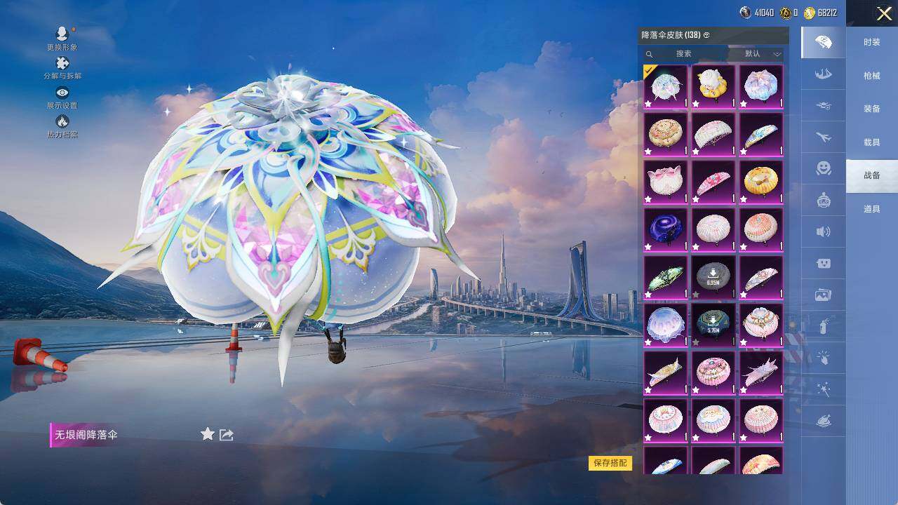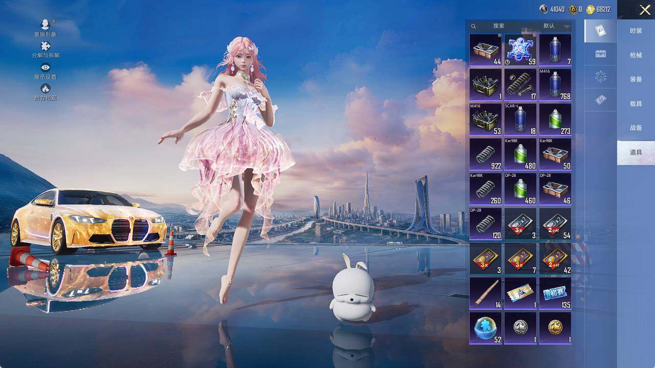 AKM-梦之光华,AKM-幽焰骑士,SCAR-L-青春物语,SCAR-L-时空协奏,M416-暖熊萌萌,M416-电玩时刻,M416-女娲灵识,GROZA-旋转彩虹,GROZA-镜光银凌,AUG-甜心首席,M762-甜蜜誓约,UMP45-玉魂晶魄,汤姆逊-冰川粉黛,AKS-74U-信仰神谕,P90-粉樱探戈,Kar98K-巳巳如意,M24-莲影清波,AWM-天使羽翼,Mk14-精灵梦叶罗丽,AMR-鸢尾晶梦,M417-第五大道,M200-梦海之灵,SVD-月影灵韵,MK12-雪月幻音,S12K-海渊国主,SPAS-12-蜜语绒猫,DP-28-千金淑猫,MG3-洛神天依,PKM-江南烟雨,平底锅-林间仙鹿,平底锅-仲夏莫吉托,平底锅-桃粉嫣然,破片手榴弹-粉粉猫爪