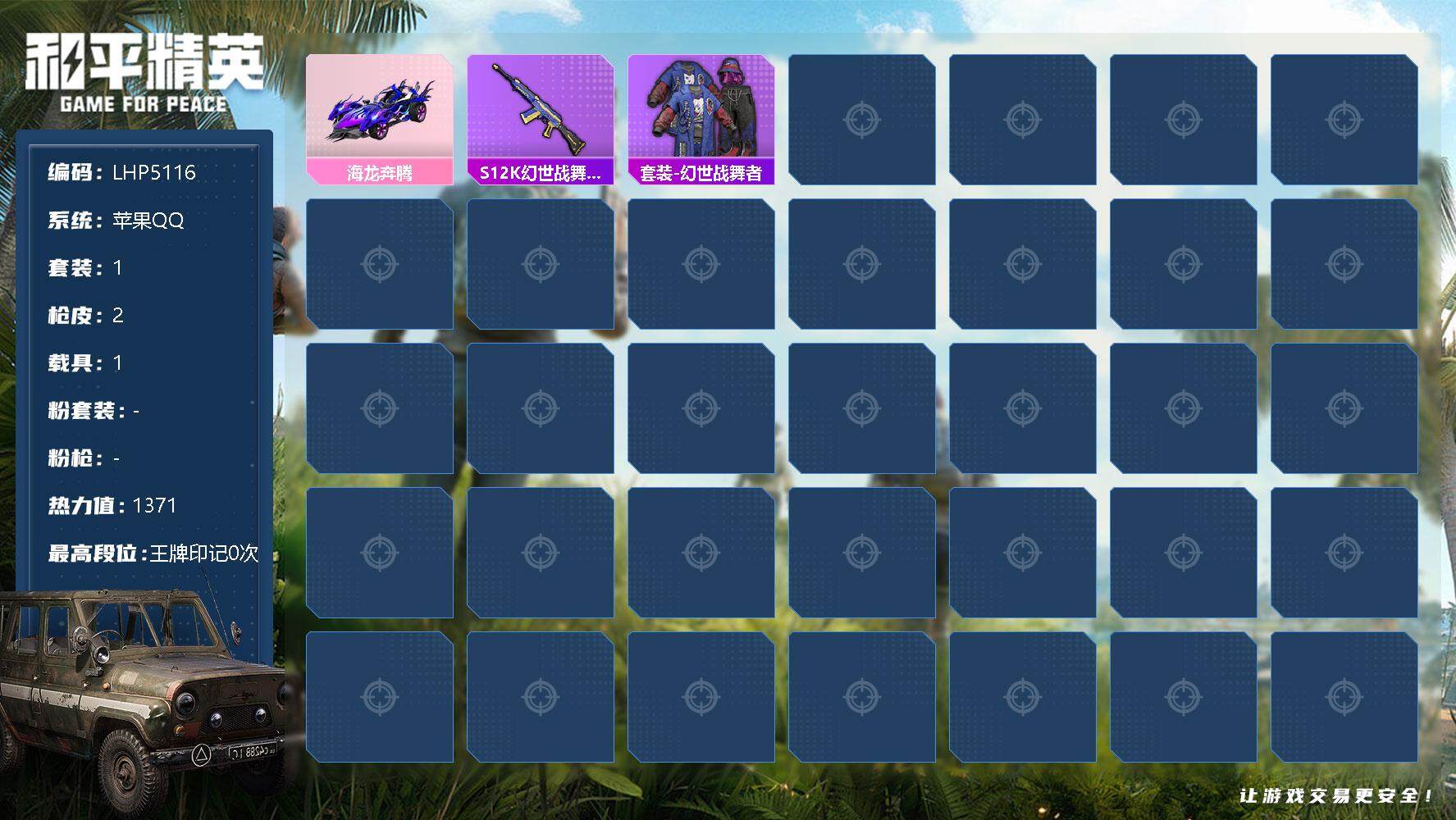 - [11546939]总资产:147.8M 3传说枪械 哈夫币:104K 可二次 可修改实名 烽火地带段位:黄金 全面战场段位:上等兵 传说武器皮肤:SR-25射手步枪-水墨云图,复合弓-黑-天际线,勇士冲锋枪-能天使-午夜邮差 史诗武器皮肤:SR-3M紧凑突击步枪-英雄,AUG突击步枪-蝮蛇,M700狙击步枪-蝮蛇,PKM通用机枪-蝮蛇,G3战斗步枪-战场英杰,SV-98狙击步枪-林中猎手,M250通用机枪-囚徒,SV-98狙击步枪-囚徒,SCAR-H战斗步枪-囚徒,QBZ95-1突击步枪-曙光,沙漠之鹰-曙光,Vector冲锋枪-阿萨拉文明,S12K霰弹枪-曙光,PKM通用机枪-英雄,QSZ92G-风林火山